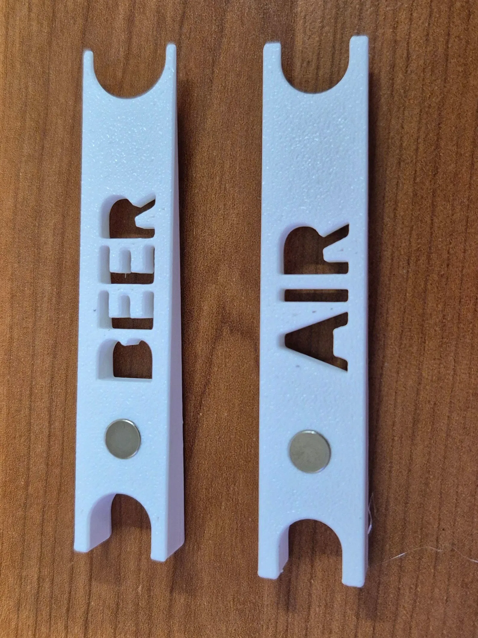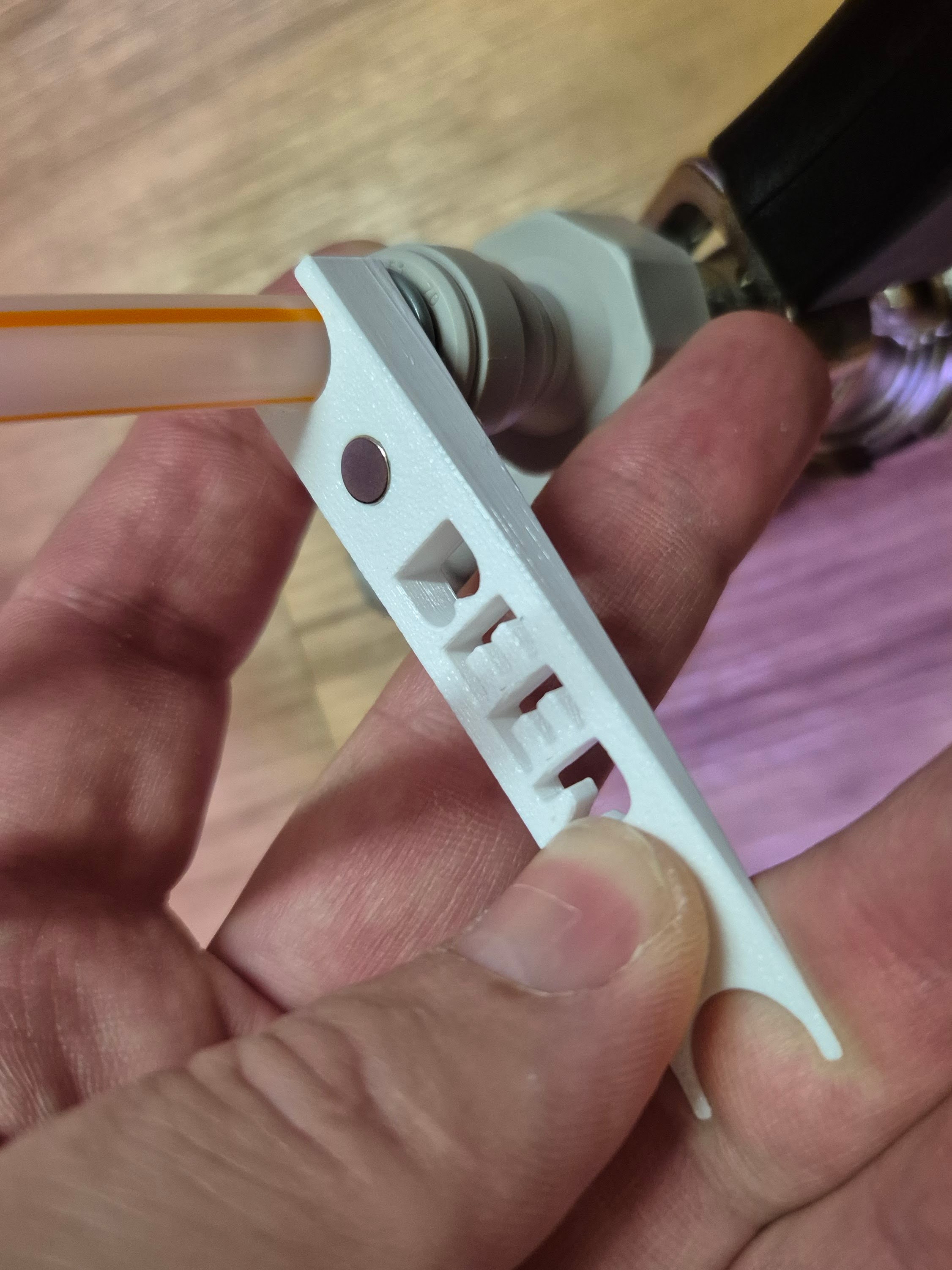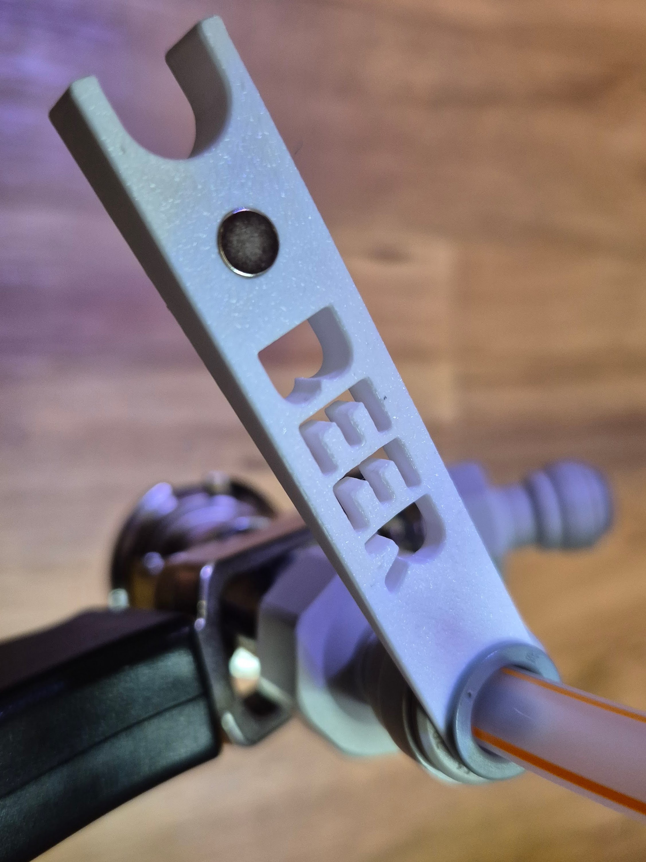 Cái đồ nghề nhỏ gọn này giúp anh em khóa/siết chặt và mở các đầu nối nhanh (JG, John Guest) một cách dễ dàng, thường dùng cho mấy cái vòi làm lạnh bia/nước giải khát (ví dụ: Lindr Pygmy). Một cái khóa là cho dây hơi/gas 8 mm, cái còn lại là cho dây bia/nước giải khát 9,5 mm. Mỗi bộ phận đều có thêm phần âm - hình trụ 2x6 mm - để gắn nam châm Neodym. Anh em có thể dễ dàng chỉnh kích thước các bộ phận này để vừa với nam châm cỡ khác hoặc bỏ hẳn đi cũng được. Tôi in thử bằng nhựa PCTG siêu bền, mà chắc nhựa PET cũng chạy ngon lành. Cái đồ nghề này cứu nguy cho móng tay của tôi thiệt đó - nhất là lúc mở dây ống. Chúc anh em nâng cốc vui vẻ nha!