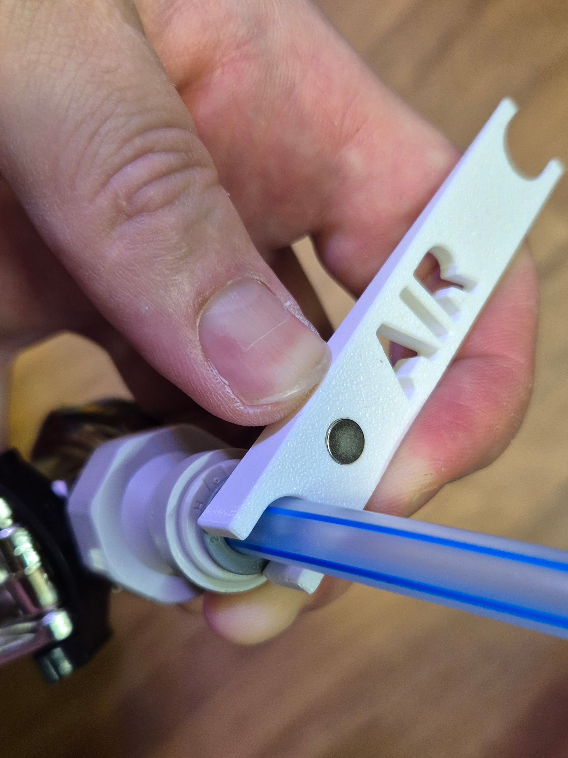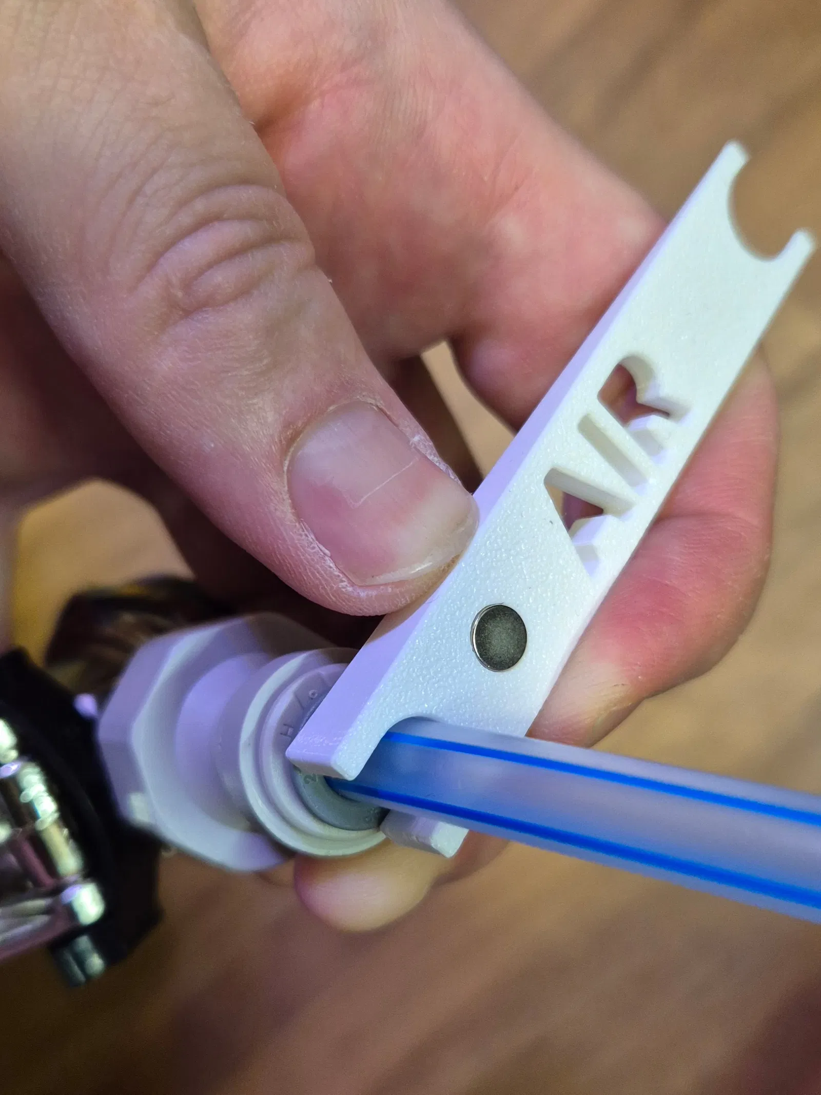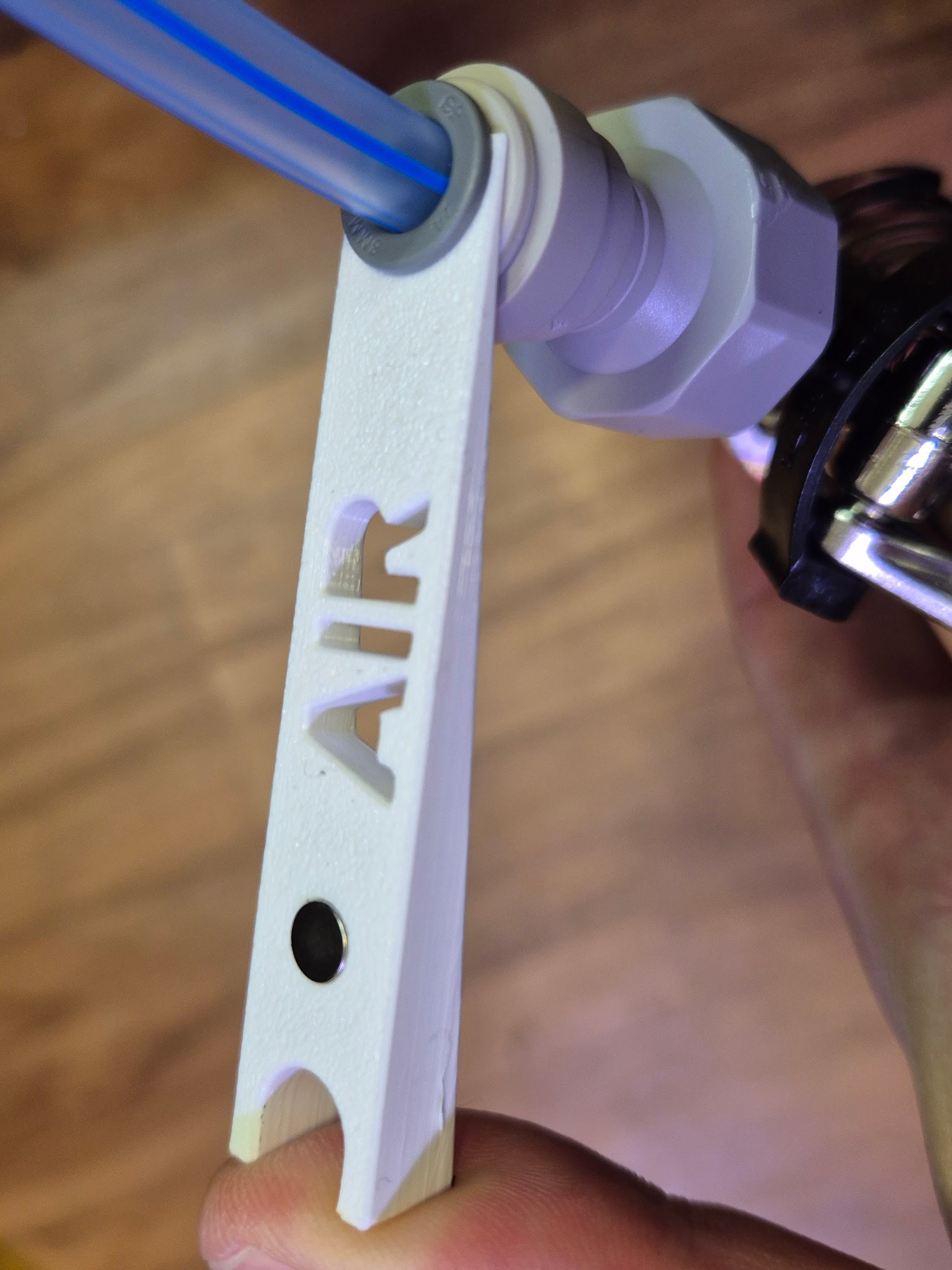 Cái đồ nghề nhỏ gọn này giúp anh em khóa/siết chặt và mở các đầu nối nhanh (JG, John Guest) một cách dễ dàng, thường dùng cho mấy cái vòi làm lạnh bia/nước giải khát (ví dụ: Lindr Pygmy). Một cái khóa là cho dây hơi/gas 8 mm, cái còn lại là cho dây bia/nước giải khát 9,5 mm. Mỗi bộ phận đều có thêm phần âm - hình trụ 2x6 mm - để gắn nam châm Neodym. Anh em có thể dễ dàng chỉnh kích thước các bộ phận này để vừa với nam châm cỡ khác hoặc bỏ hẳn đi cũng được. Tôi in thử bằng nhựa PCTG siêu bền, mà chắc nhựa PET cũng chạy ngon lành. Cái đồ nghề này cứu nguy cho móng tay của tôi thiệt đó - nhất là lúc mở dây ống. Chúc anh em nâng cốc vui vẻ nha!