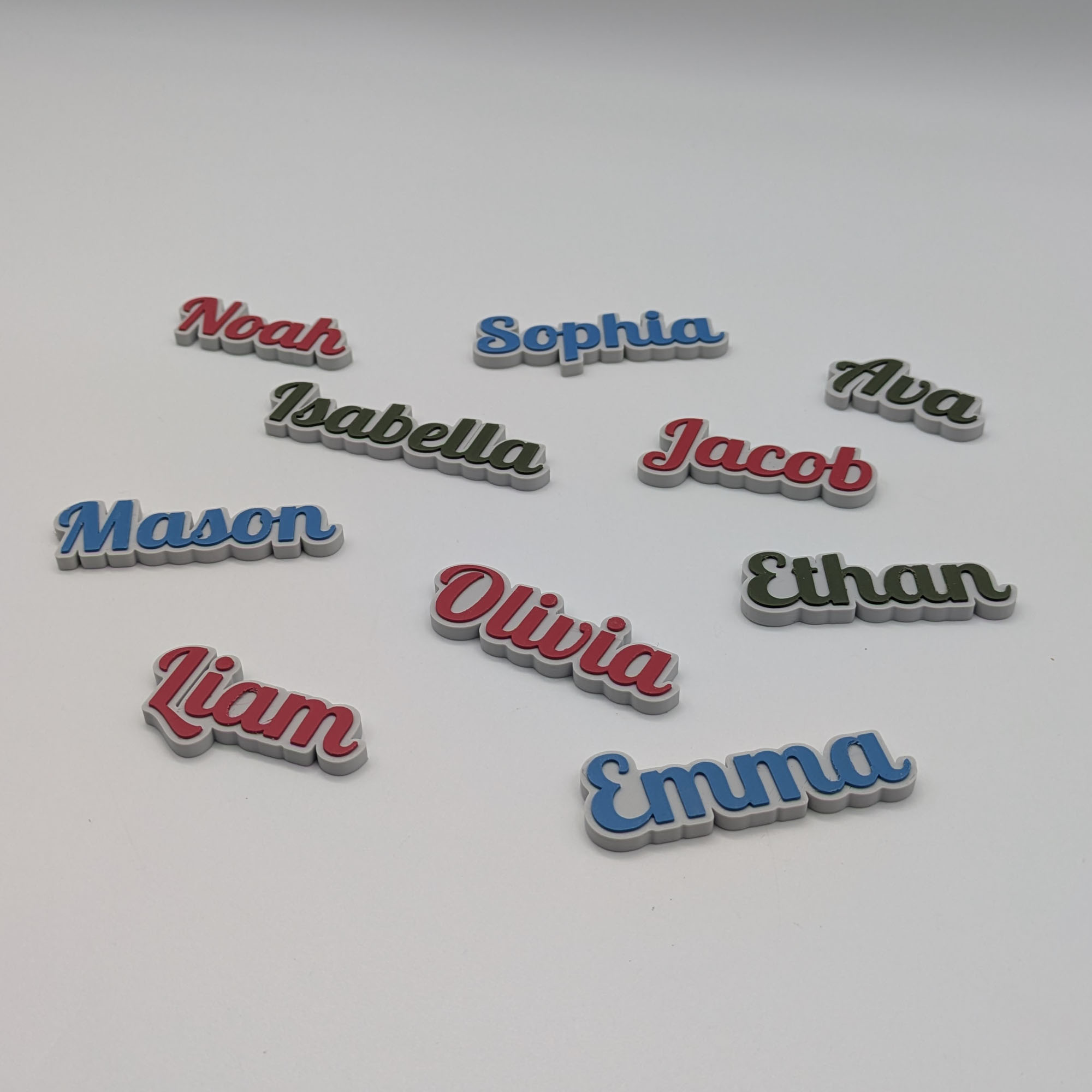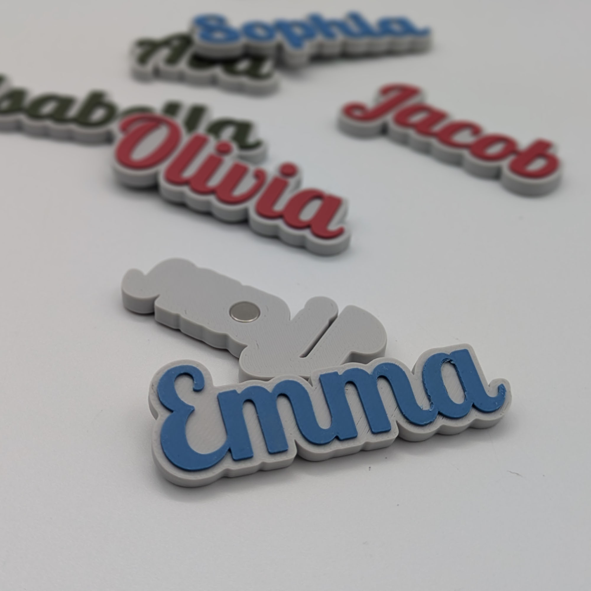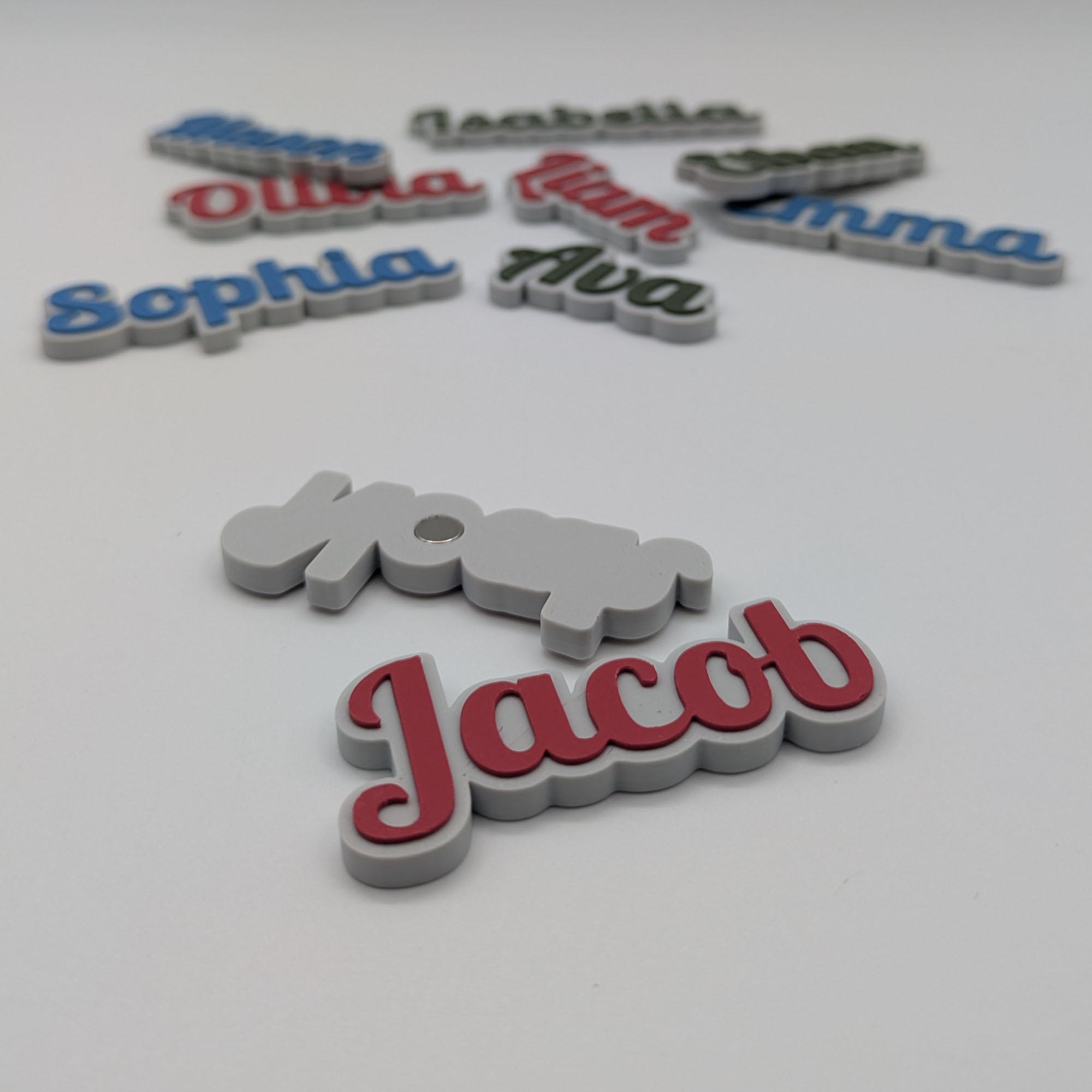 Dán tên của bạn lên tủ lạnh, lò sưởi hoặc bảng trắng với bộ bảng tên nam châm này. Bộ sưu tập có 10 tên phổ biến, bạn cũng có thể tự tạo tên riêng với công cụ 3D trên layermodels.com.
