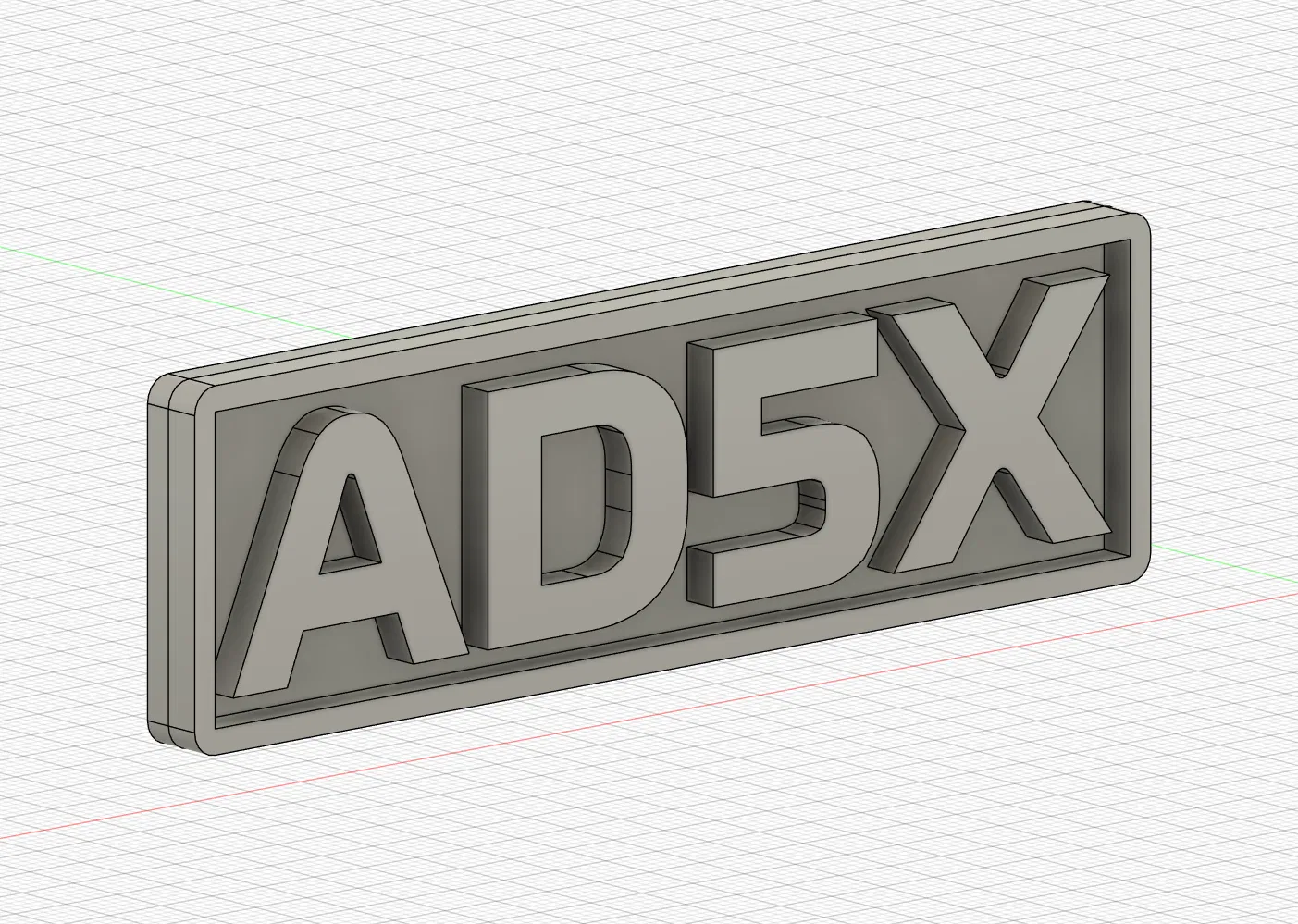 Tui có chỉnh sửa lại khung máy Flashforge AD5X để thêm bảng tên. Bảng tên gồm đế, vòng và 4 chữ cái, có thể dán vô phần khung được chỉnh sửa. Có cả file .STEP để bạn tùy chỉnh.