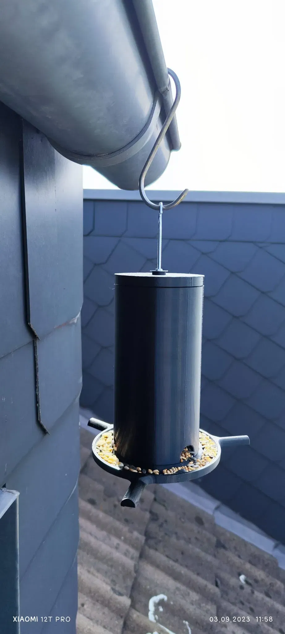 Vì trong cơn bão vừa rồi, cái máy cho chim của chúng ta đã bị gió cuốn đi, tôi đã tự thiết kế một cái và điều chỉnh cho hai cách lắp đặt, nó có thể được đặt đứng và sử dụng nắp đóng, hoặc có thể treo lên bằng một móc ren M4 (móc trần Rigips với kẹp) và hai miếng đệm, cũng có STL phù hợp cho điều đó, cái này có một lỗ 4mm trên nắp.