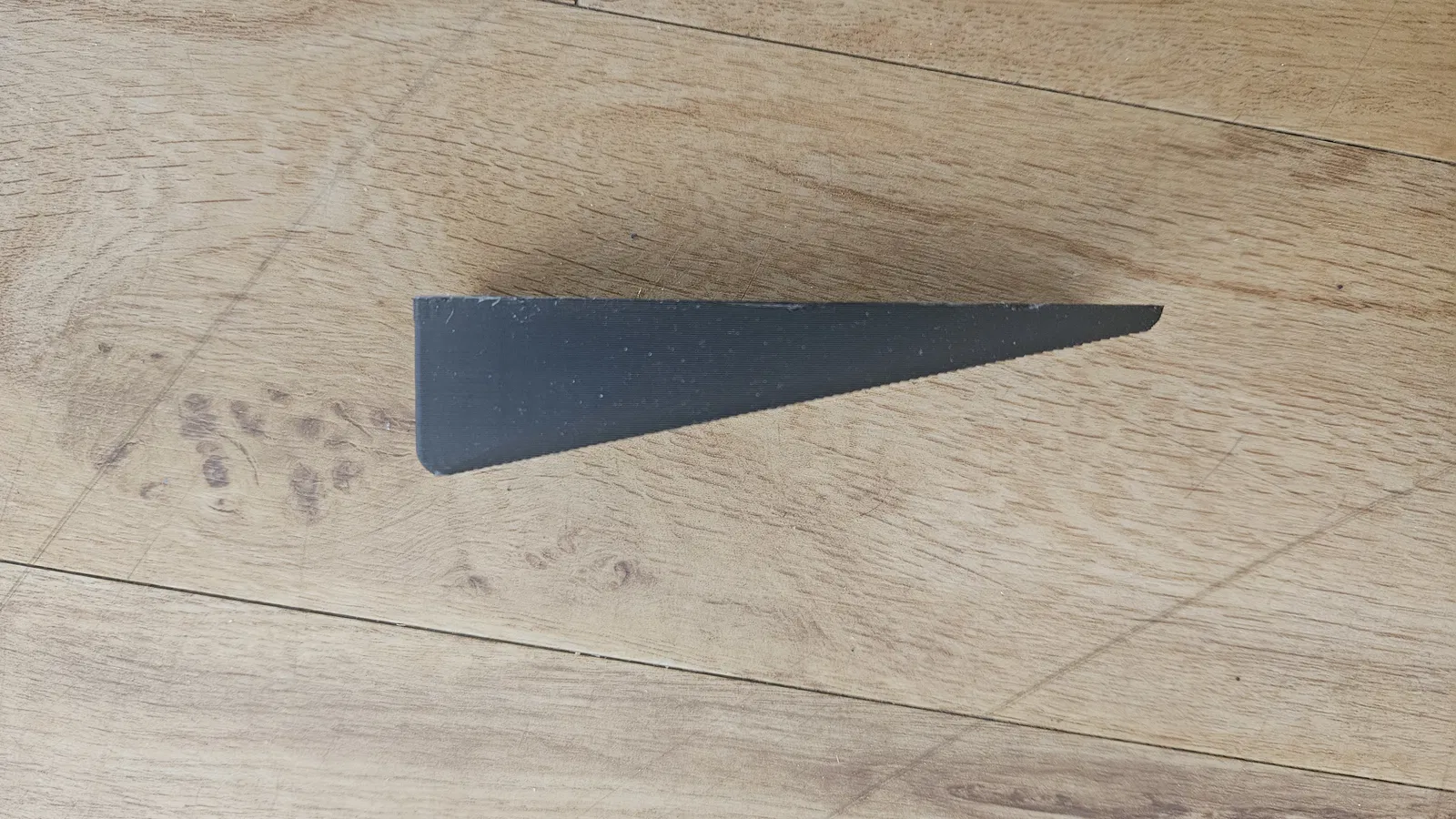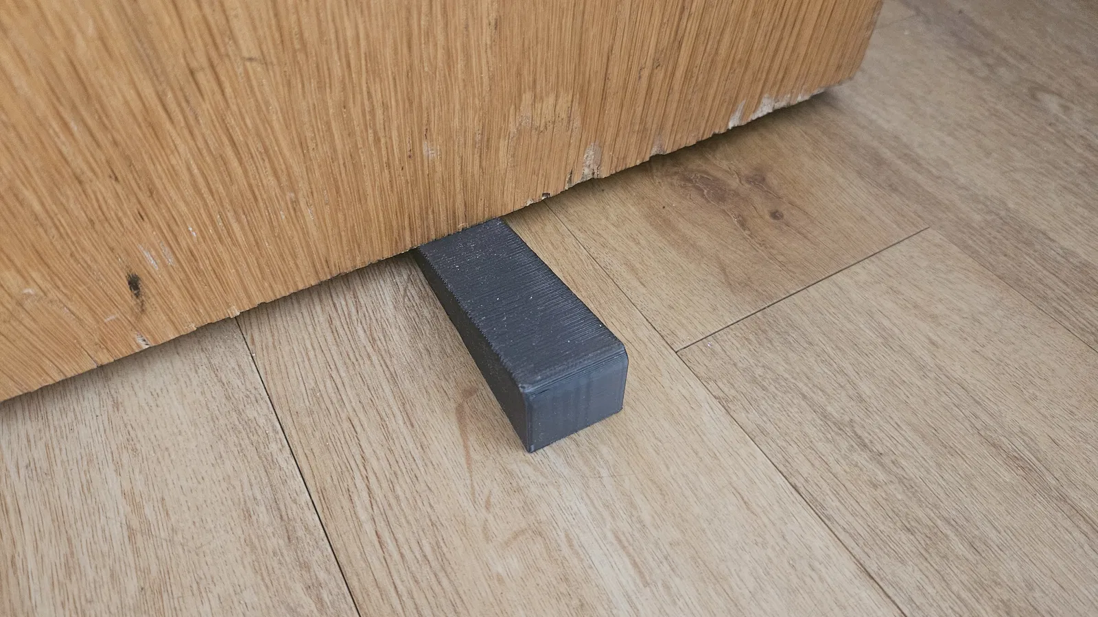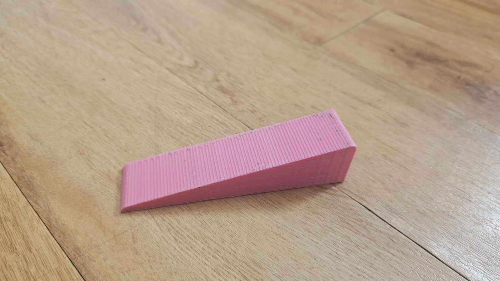 Cái của bạn sẽ bền hơn nếu in bằng ABS hoặc PETG, nhưng in bằng PLA cũng rất tuyệt. Mình có mấy cái đang xài ở nhà nè; mình cũng in vài cái để xài trong nhà máy sàn bê tông với cửa sắt. Dùng hơn một năm rồi vẫn tốt.