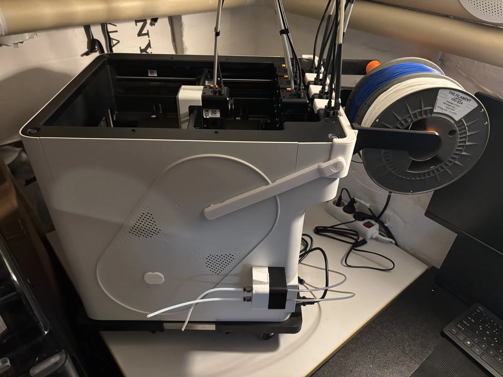 Khi thử nghiệm TPU mềm trên Snapmaker U1, tôi đã phát triển giá đỡ đa cuộn dạng mô-đun này cho đầu nạp trực tiếp của máy in.