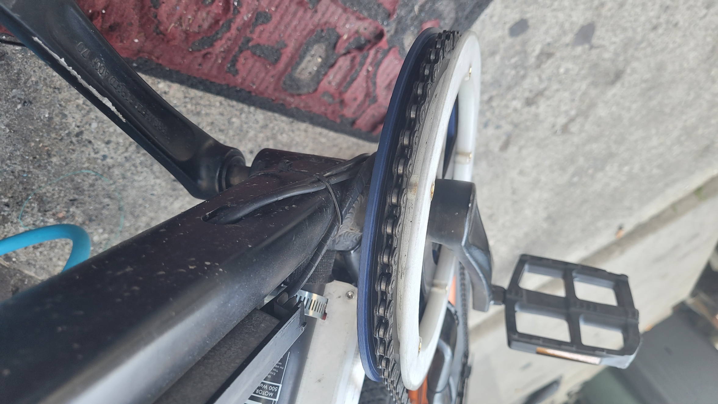 Bộ nhông sên cho xe đạp địa hình ebike. Tui chán cảnh quần áo bị dính dầu nhớt dơ dáy vô răng sên với lại bị tuột sên hoài nên tui làm cái này. Nó cũng đỡ được chút đỉnh, giúp sên không bị tuột hẳn ra ngoài.