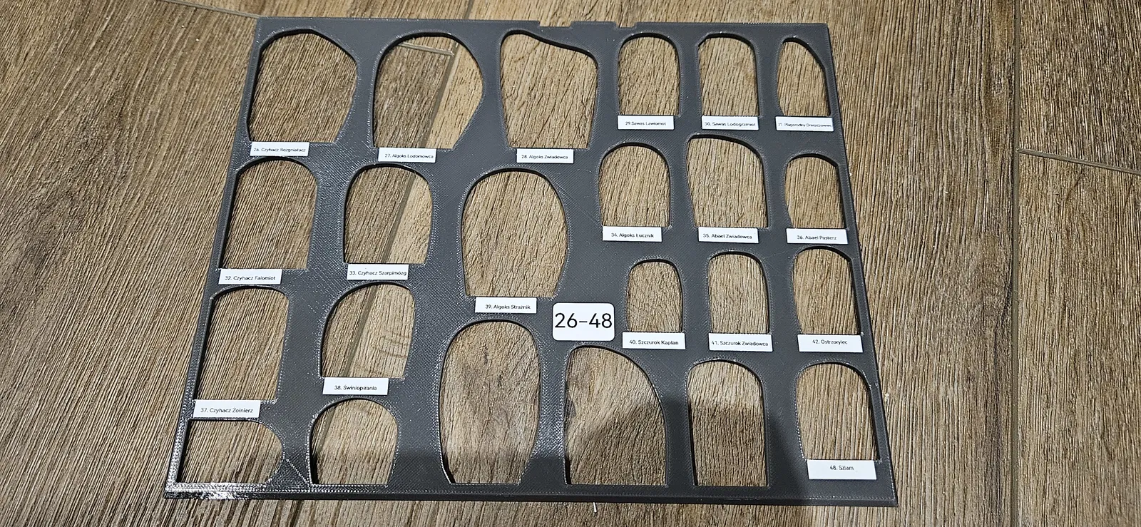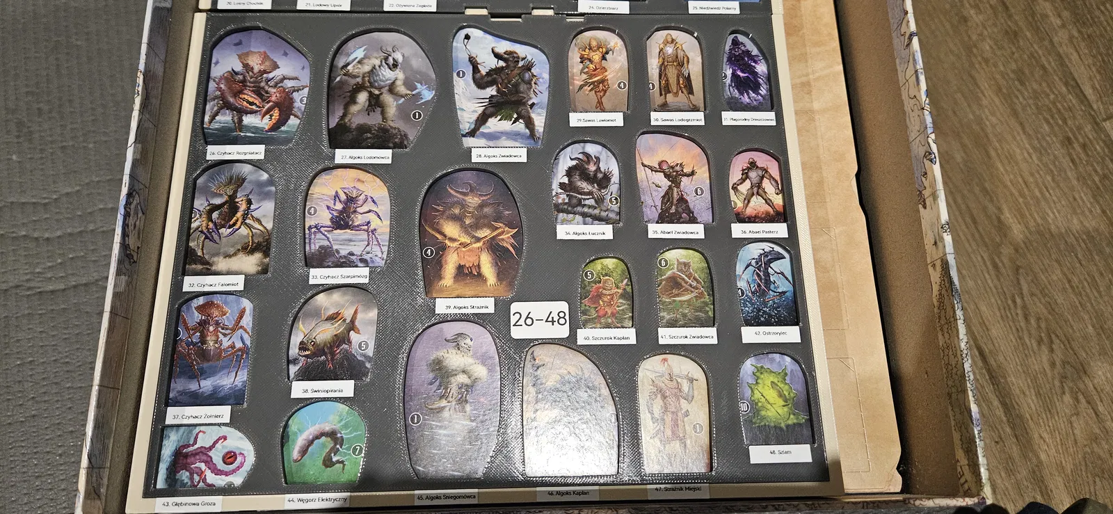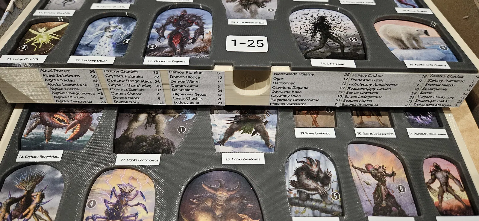 Phiên bản nhựa của nắp cho khay lưu trữ Vanity của Frosthaven, làm bởi NR. Bạn sẽ không cần dùng plex nữa. Tôi đã thêm các nhãn để dễ dàng tìm kiếm quái vật.