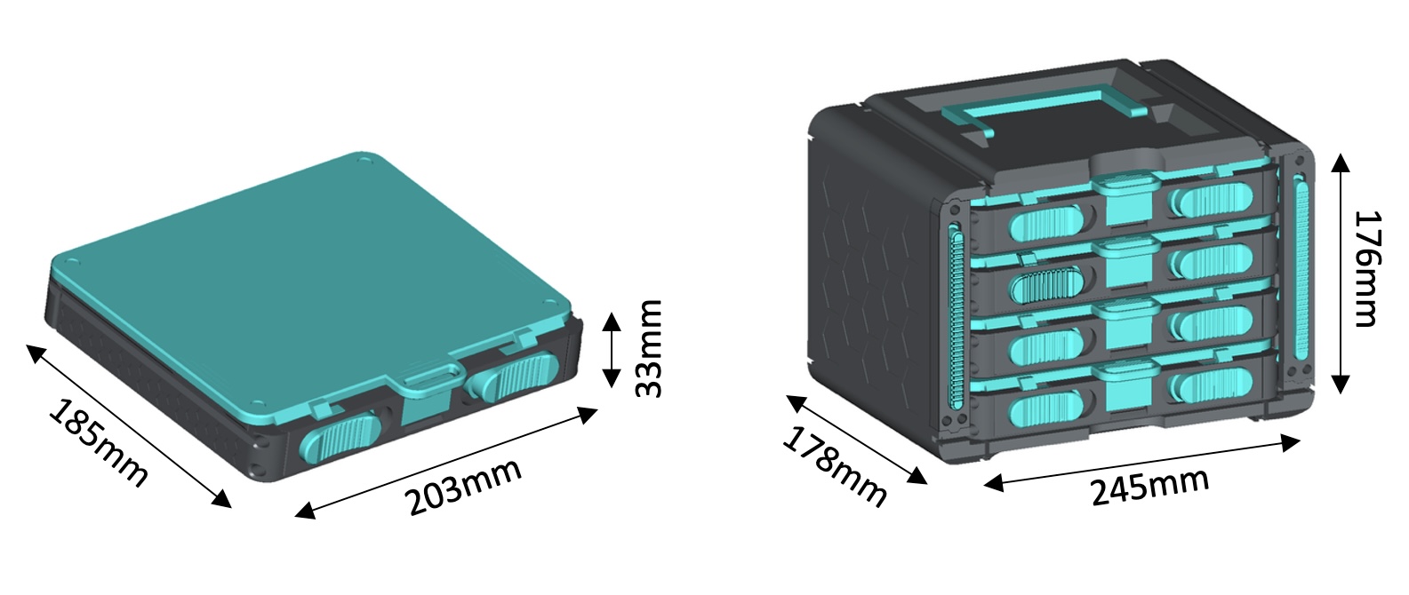 Tất cả các bộ phận chèn từ các phiên bản trước vẫn tương thích hoàn toàn nhưng Hộp Pro mới không tương thích với Khay cũ (Phiên bản Pro có hướng dẫn mới). Nhưng tất cả các Khay đều có thể xếp chồng lên nhau như mọi khi. Hộp đựng đồ này (Phiên bản XL Pro) có cơ chế trượt có khóa. Các hộp có thể được lưu trữ trong khay với tối đa 4 cái. Bạn có thể kết nối các khay bằng các bộ nối theo bất kỳ hướng nào và giữ chúng lại với nhau. Các bộ phận chèn có sẵn ở mọi kích cỡ.