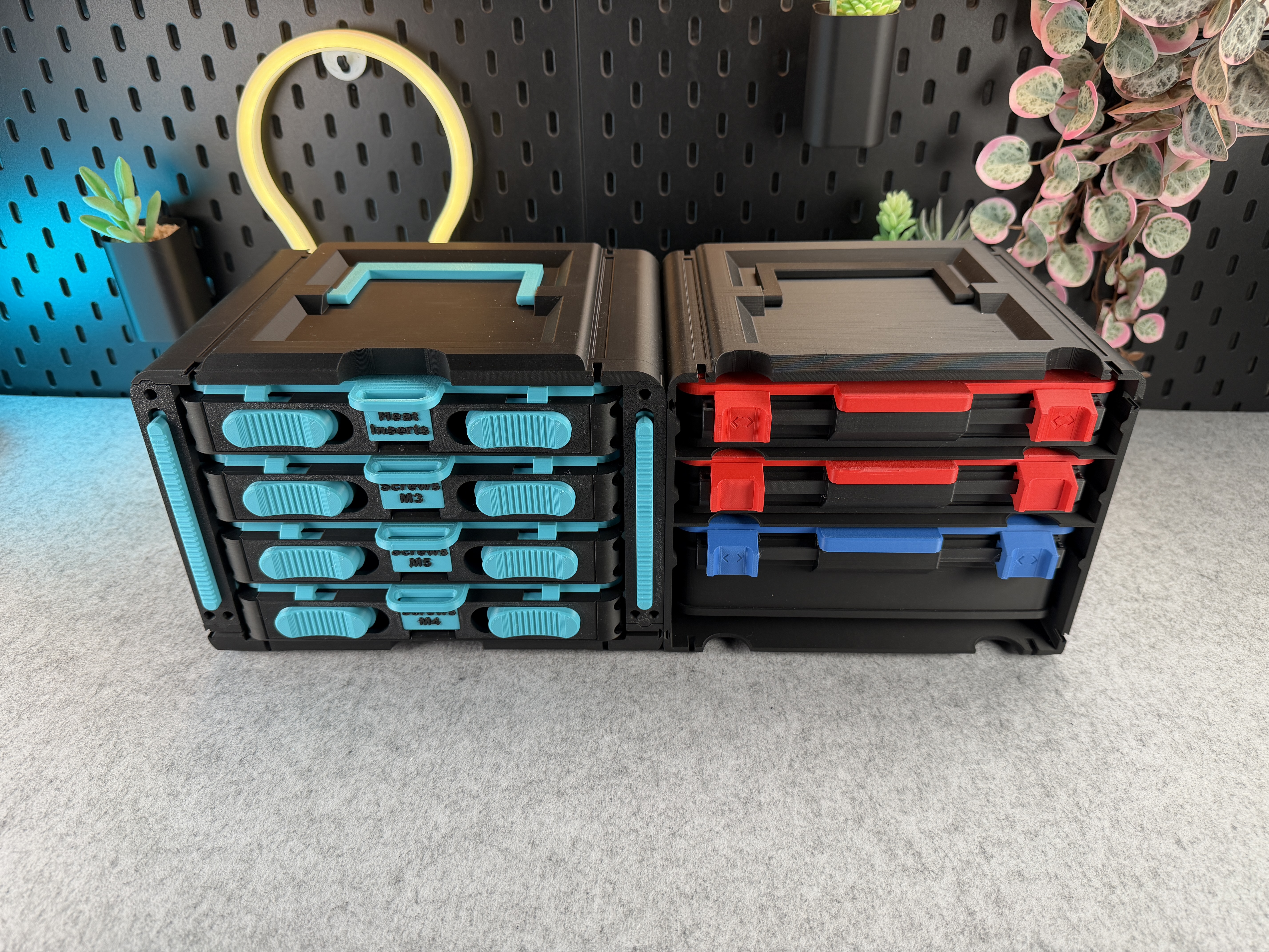Điểm trừ duy nhất là phiên bản này yêu cầu ốc vít M3 và long đền nhiệt M3, nên làm ơn kiểm tra Danh sách Vật liệu trong Hướng dẫn Lắp ráp trước nha (Trong Thư mục Tải xuống Bên dưới). Tuy nhiên, lợi thế lớn là Organizer Box giờ đây dễ sửa chữa nếu thanh trượt có bị hỏng — dù điều đó chưa từng xảy ra. Hộp này đã được sử dụng khoảng một năm và vẫn hoạt động hoàn hảo.