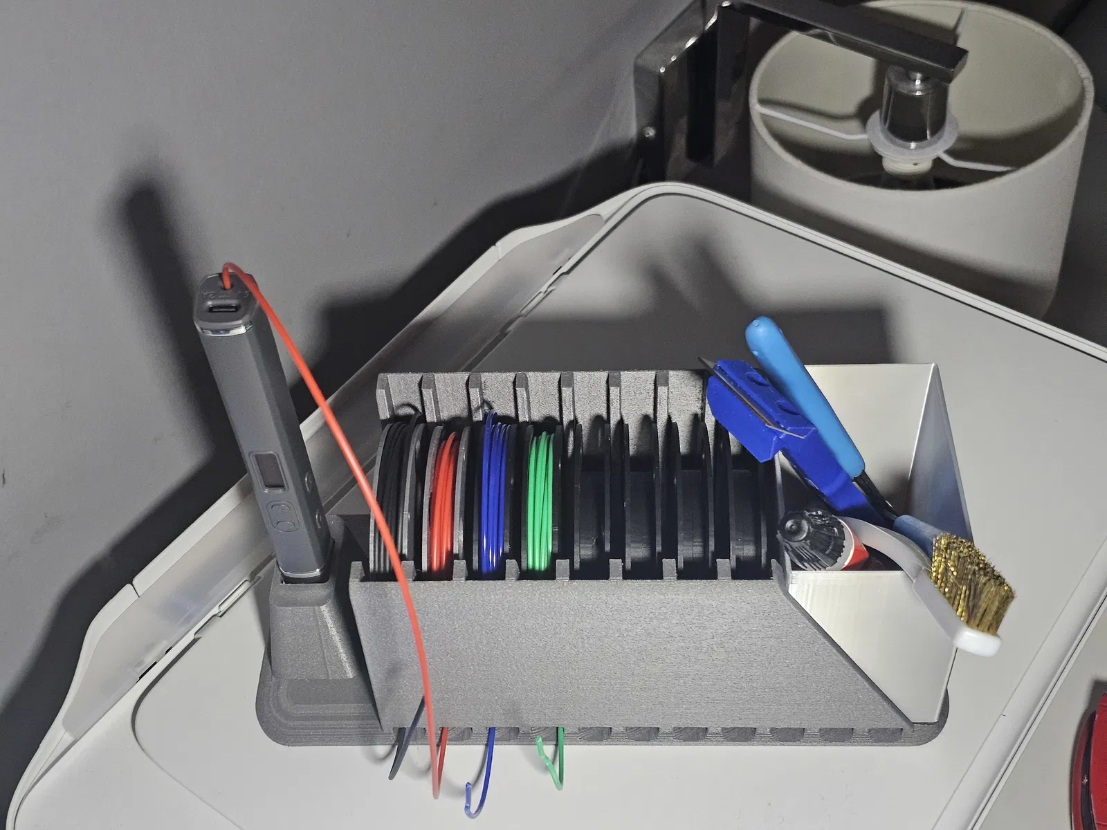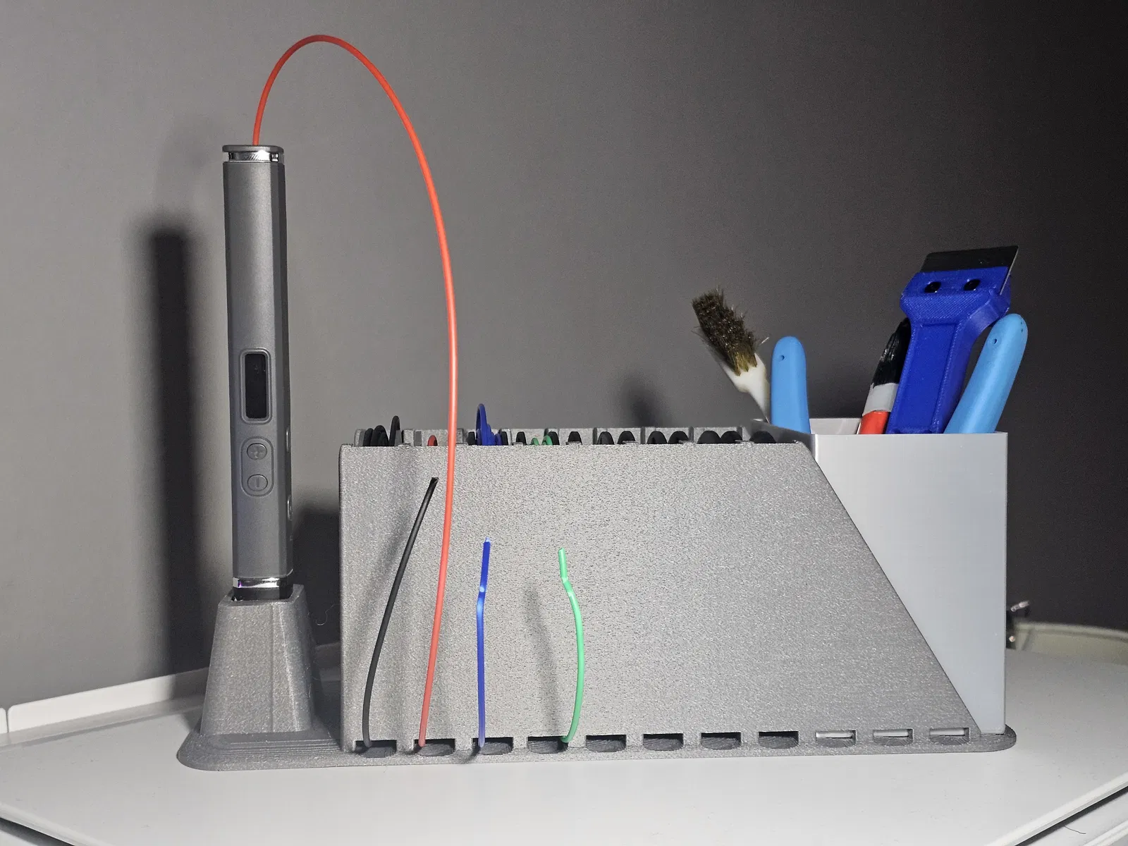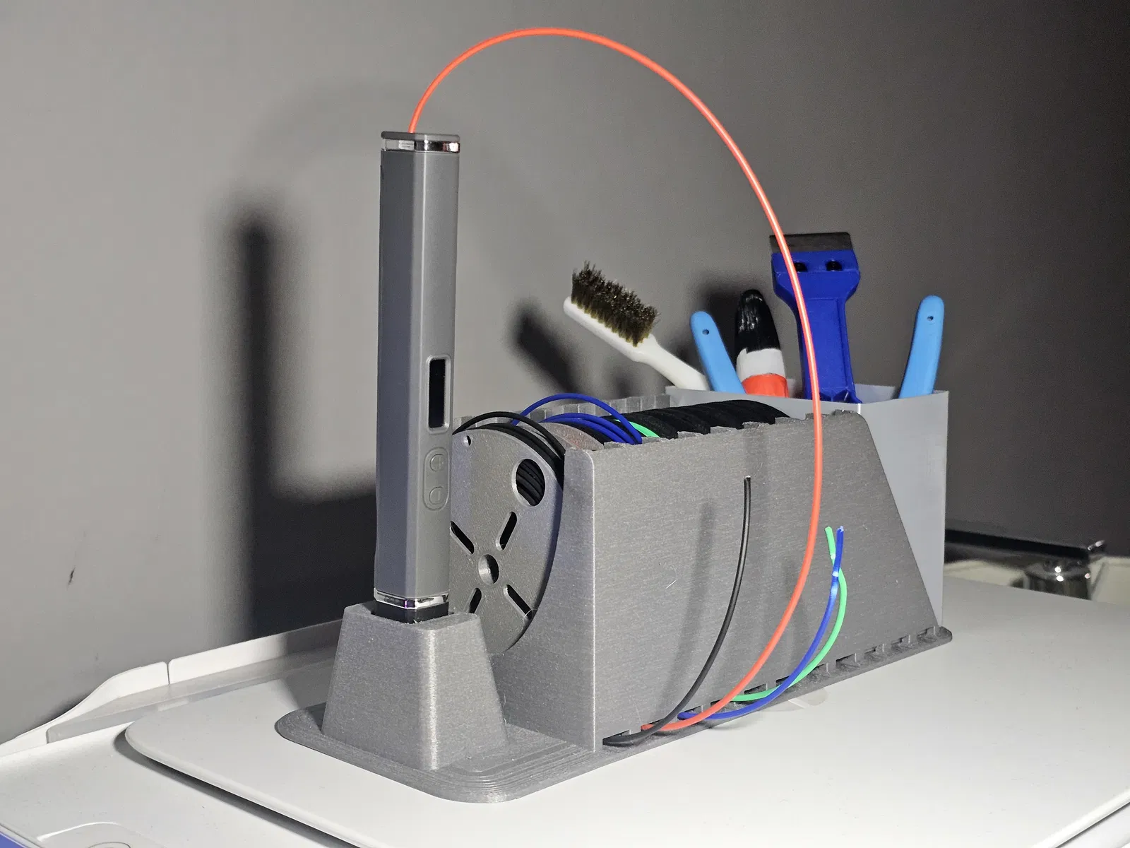 Giữ cho không gian sáng tạo của bạn gọn gàng với Trạm Bút In 3D tất cả trong một này. Bộ sản phẩm này được thiết kế để quản lý hiệu quả các màu sợi in và giữ cho các công cụ của bạn được ngăn nắp trong một không gian nhỏ gọn.