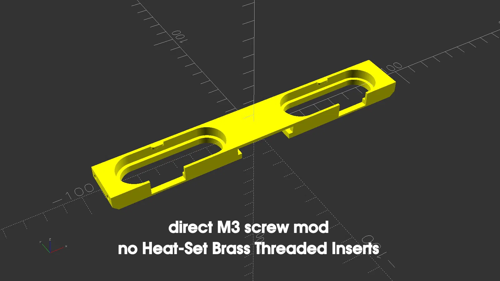 Chế lại mẫu "sliding_block_v00.stl", không cần dùng ren đồng nữa. Lỗ ốc M3 giờ đây tự tạo ren khi vặn, tiện lợi cho người dùng.