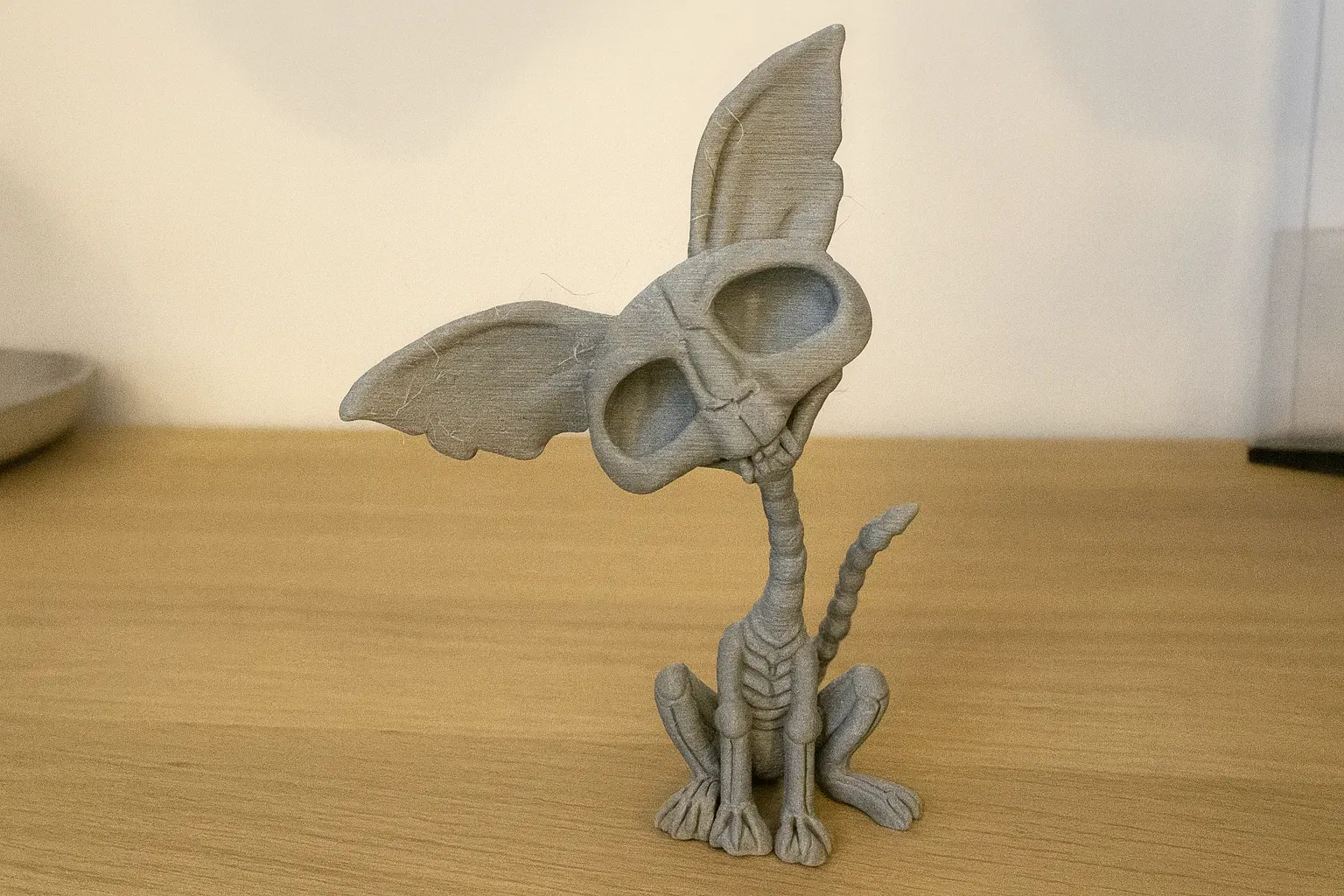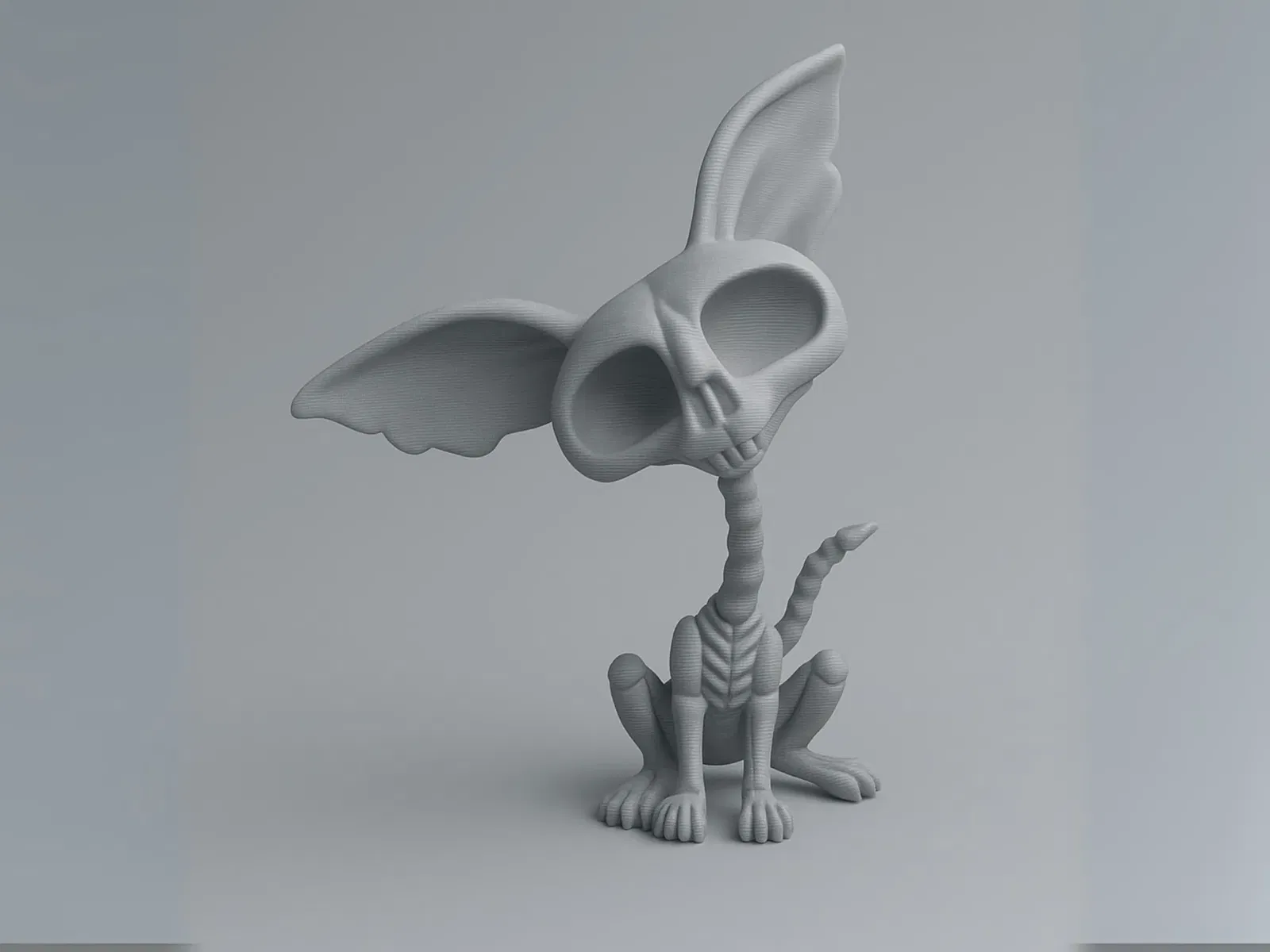 Chú mèo bộ xương ốm tong teo với tai bự và mắt trũng sâu, trông ghê mà lại cưng xỉu. Hoàn hảo cho dịp Halloween, trang trí theo phong cách gothic hay làm món đồ độc lạ. Kích thước 39 x 15 x 50 mm, in bằng PLA.