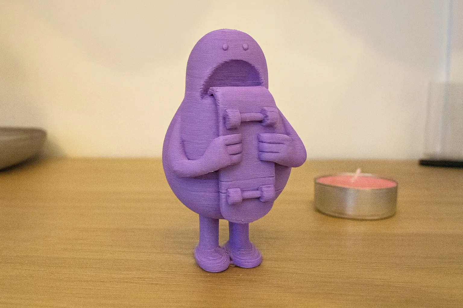 Một nhân vật nhỏ ngộ nghĩnh cầm ván trượt - luôn sẵn sàng lăn bánh! Dù bạn có thích trượt ván hay chỉ đơn giản là thích những món đồ sưu tầm vui nhộn, bức tượng này sẽ mang lại không khí vui vẻ cho bất kỳ bàn làm việc hay kệ sách nào. In bằng PLA, kích thước: 34 x 65 x 37 mm.