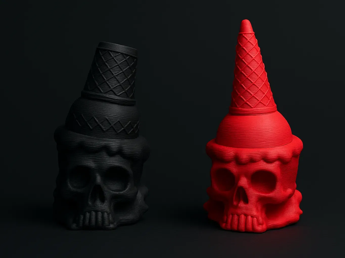 Vừa creepy, vừa hài hước, lại pha chút ngọt ngào – những cây kem hình đầu lâu này là lựa chọn tuyệt vời để trang trí cho mùa lễ hội ma quái hoặc làm món đồ sưu tập độc đáo. In bằng nhựa PLA.
