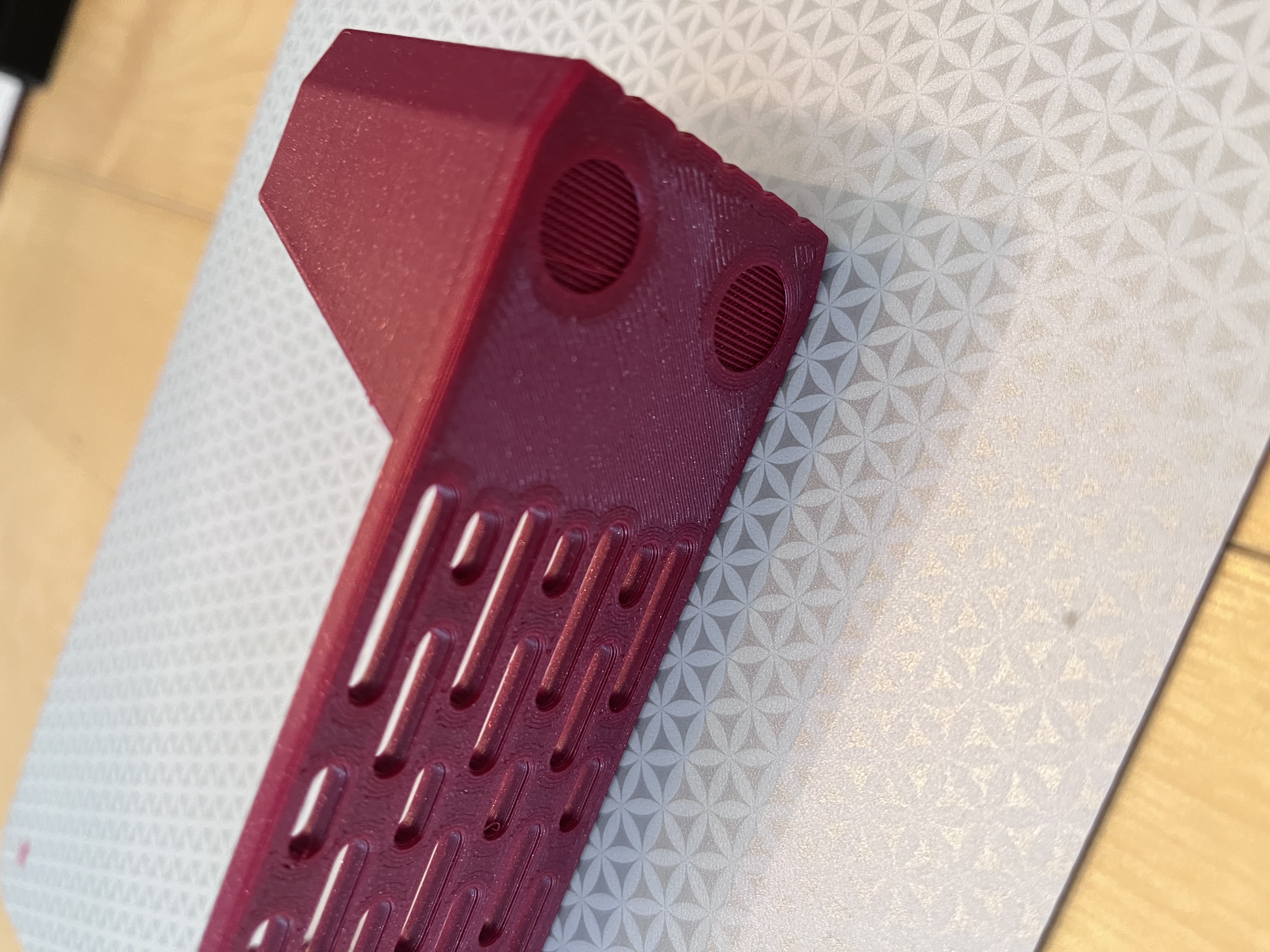 Ngoài ra, trong bản in còn có các chỗ lõm cho bốn chân cao su tròn 11mm (tùy chọn); tôi dùng loại của 3M.