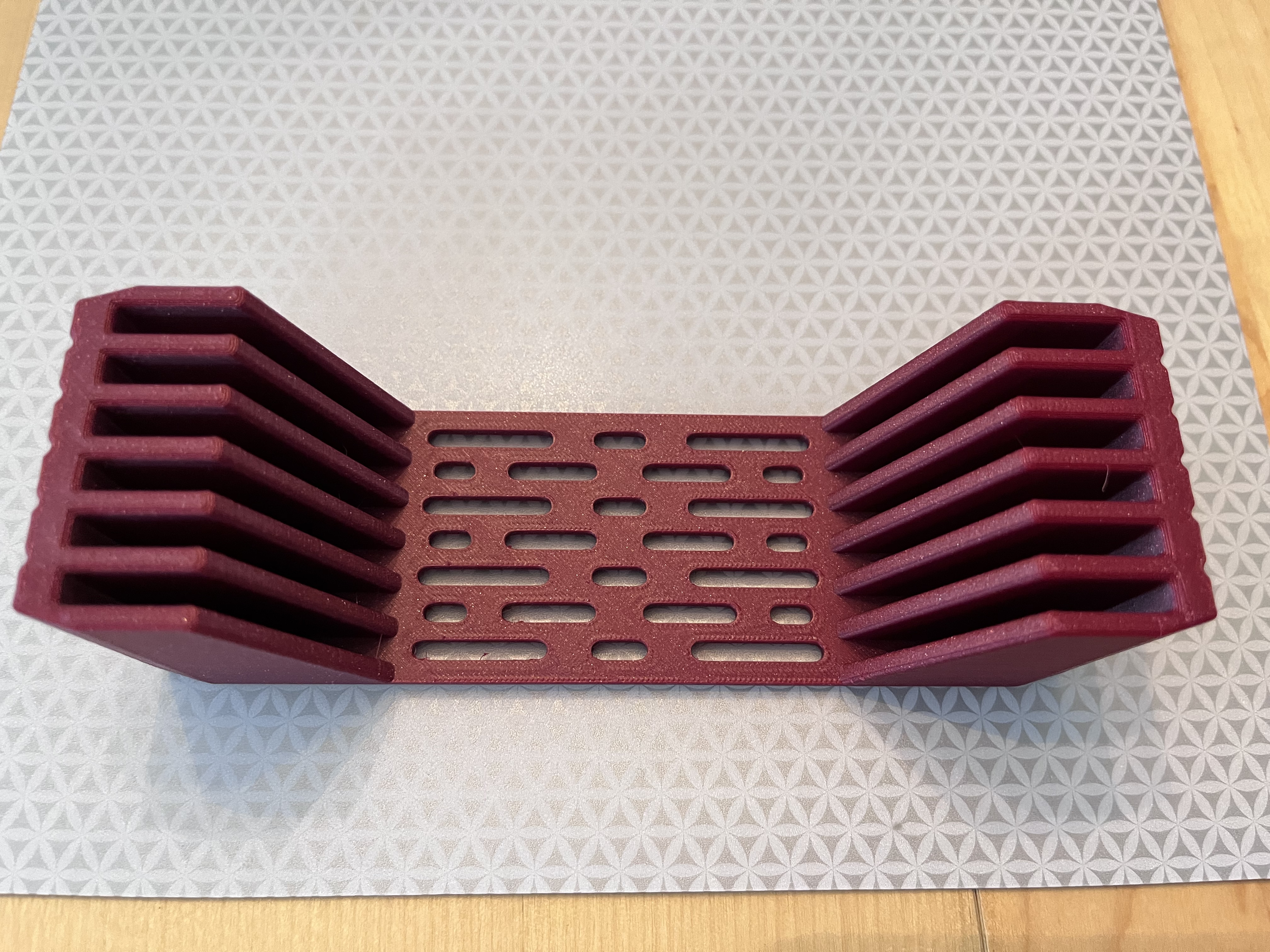 Cất giữ khay in PEI của bạn một cách gọn gàng với giá đỡ này. Nó có thể chứa tới sáu (6) khay flex plate 120x120mm, giúp chúng luôn sẵn sàng để sử dụng. Tùy chọn thêm chân cao su để tăng sự ổn định.