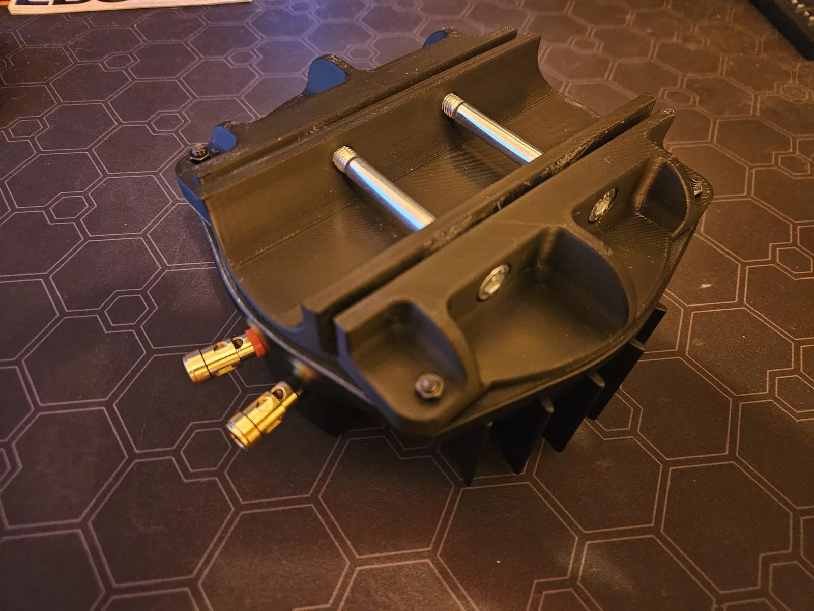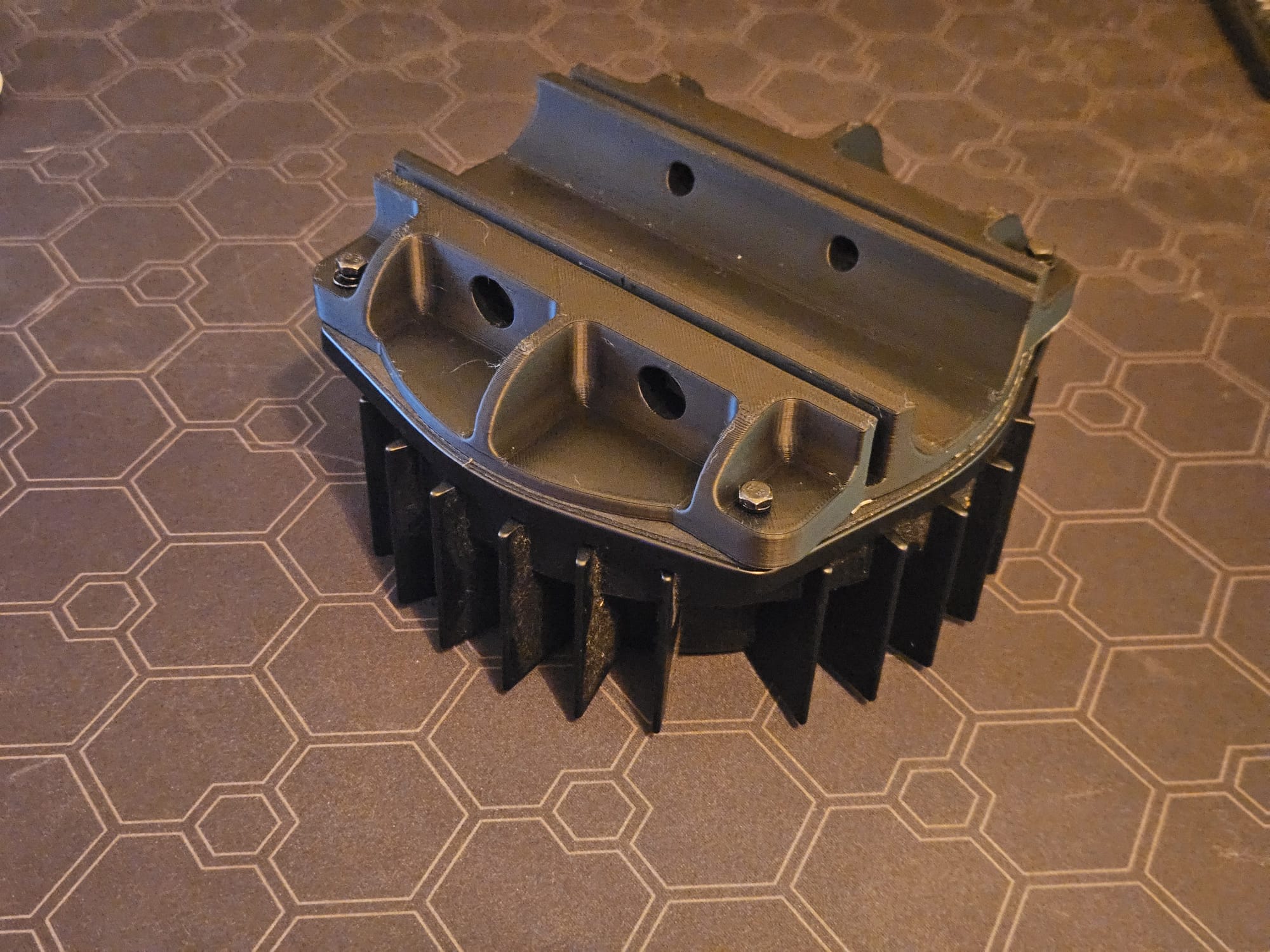 Mình đã in cái đế này ra, thử ráp lên, rồi lấy cây bút đánh dấu mấy cái lỗ để canh nè.