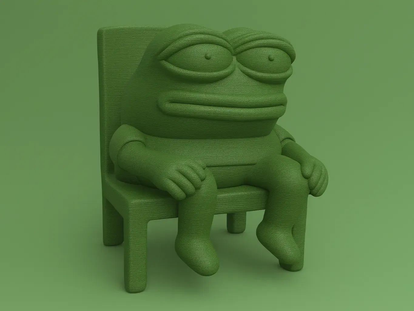 Ghế Pepe Ếch, ngồi im lặng với gánh nặng của thế giới trên vai. Mẫu in 3D này được làm bằng PLA với đầu phun 0.4 mm và có kích thước 46 × 45 × 52 mm. Một món đồ hoàn hảo để bạn đặt trên bàn làm việc, kệ sách hay góc suy tư của mình.