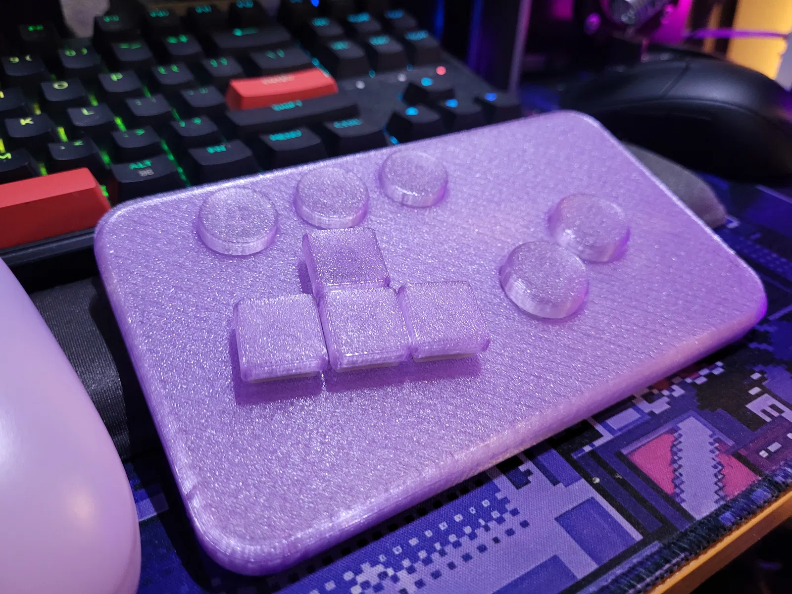 Ví dụ hiển thị sử dụng keycaps Gateron Silver low-profile và keycaps từ người dùng “pett_j” cho các phím điều hướng. Các nút tròn là các keycaps tròn đáng yêu từ CyberDNIWE được thấy Ở đây mà tôi thấy là một lựa chọn tuyệt vời ở đây nếu sử dụng keycaps Cherry MX profile full-height. Kích thước bạn muốn là “Button Small” và “Button Normal” để vừa vặn.
