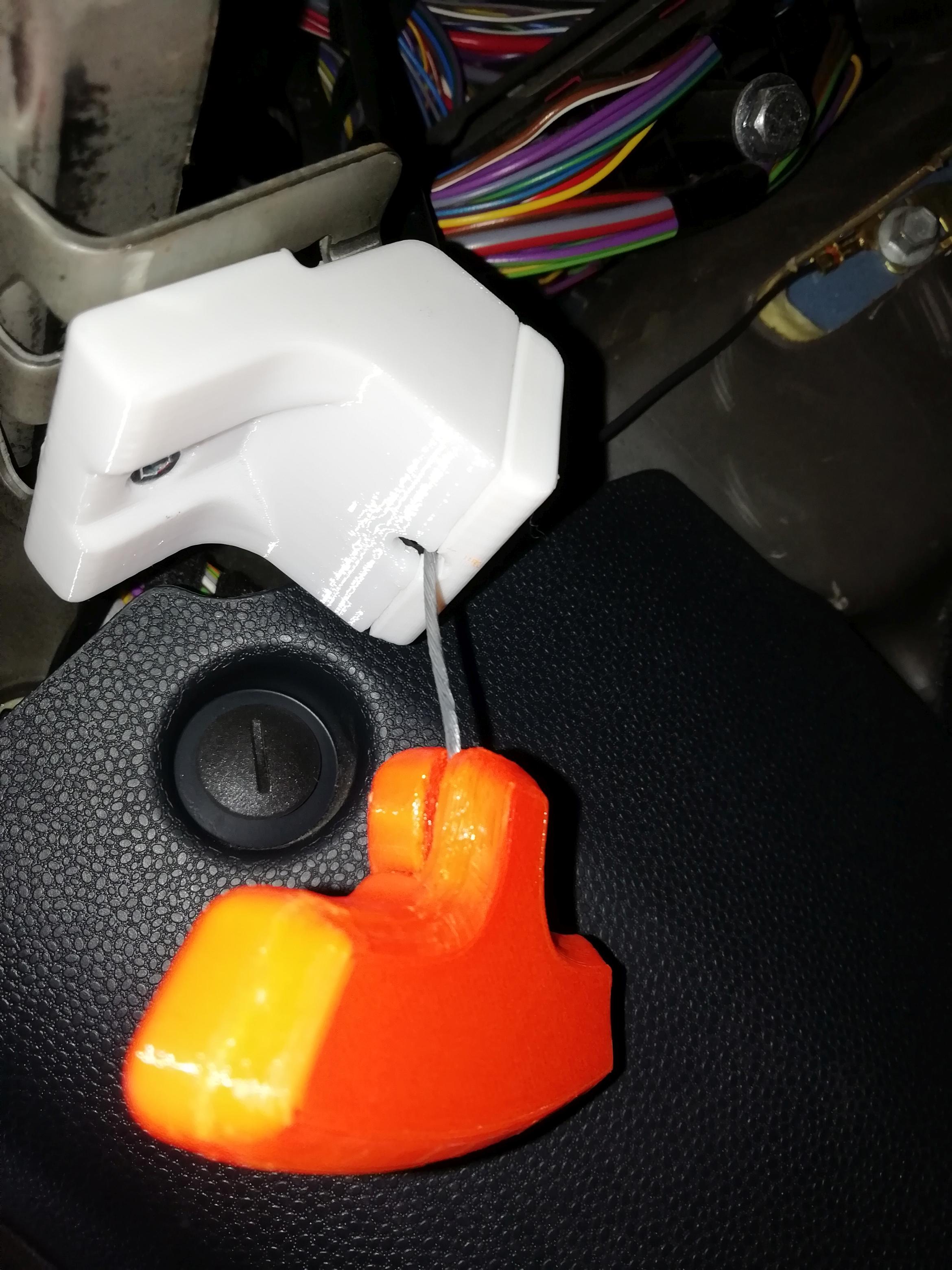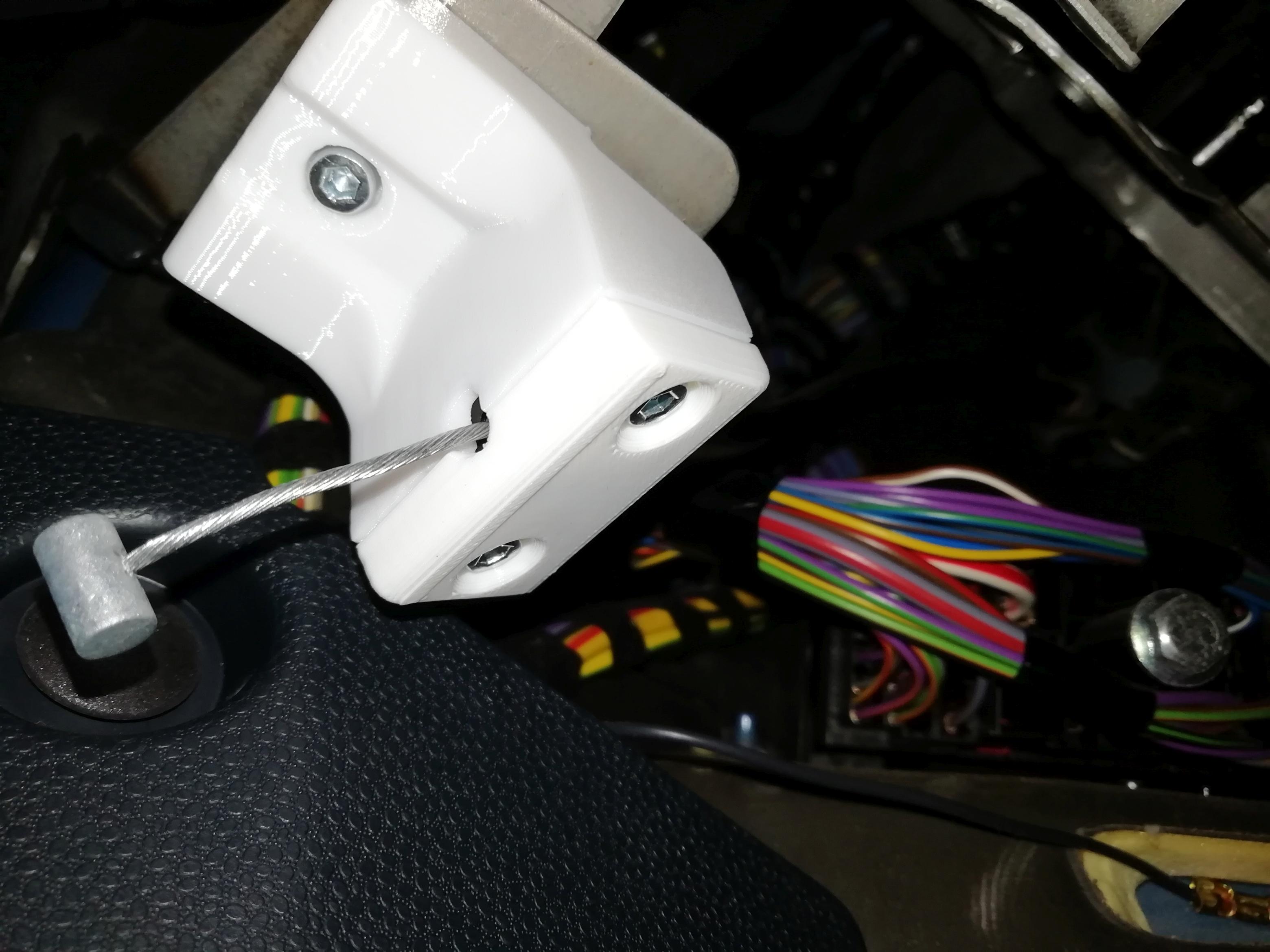 Chỉ có một điểm trừ cho bộ phận thay thế của tôi: Bộ phận gốc có một điểm dừng cho vỏ cáp Bowden và cần gạt trong một khối. Giải pháp của tôi chỉ là một cái móc, nên tôi phải dùng tay kia giữ vỏ cáp để nhả mui xe. Nhưng nó vẫn hoạt động...