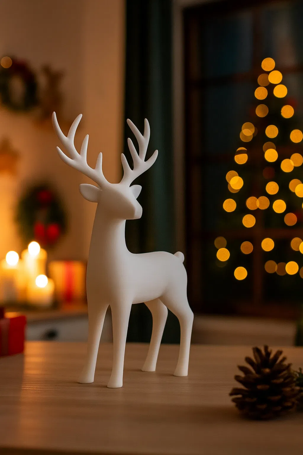 Tượng tuần lộc Giáng sinh tối giản với thiết kế hiện đại, đường nét thanh lịch, mang không khí lễ hội và mùa đông vào nhà bạn. Phù hợp trang trí kệ, bàn, bệ cửa sổ. Có thể in nhiều màu sắc khác nhau. Lý tưởng cho người yêu thích thiết kế 3D hiện đại.