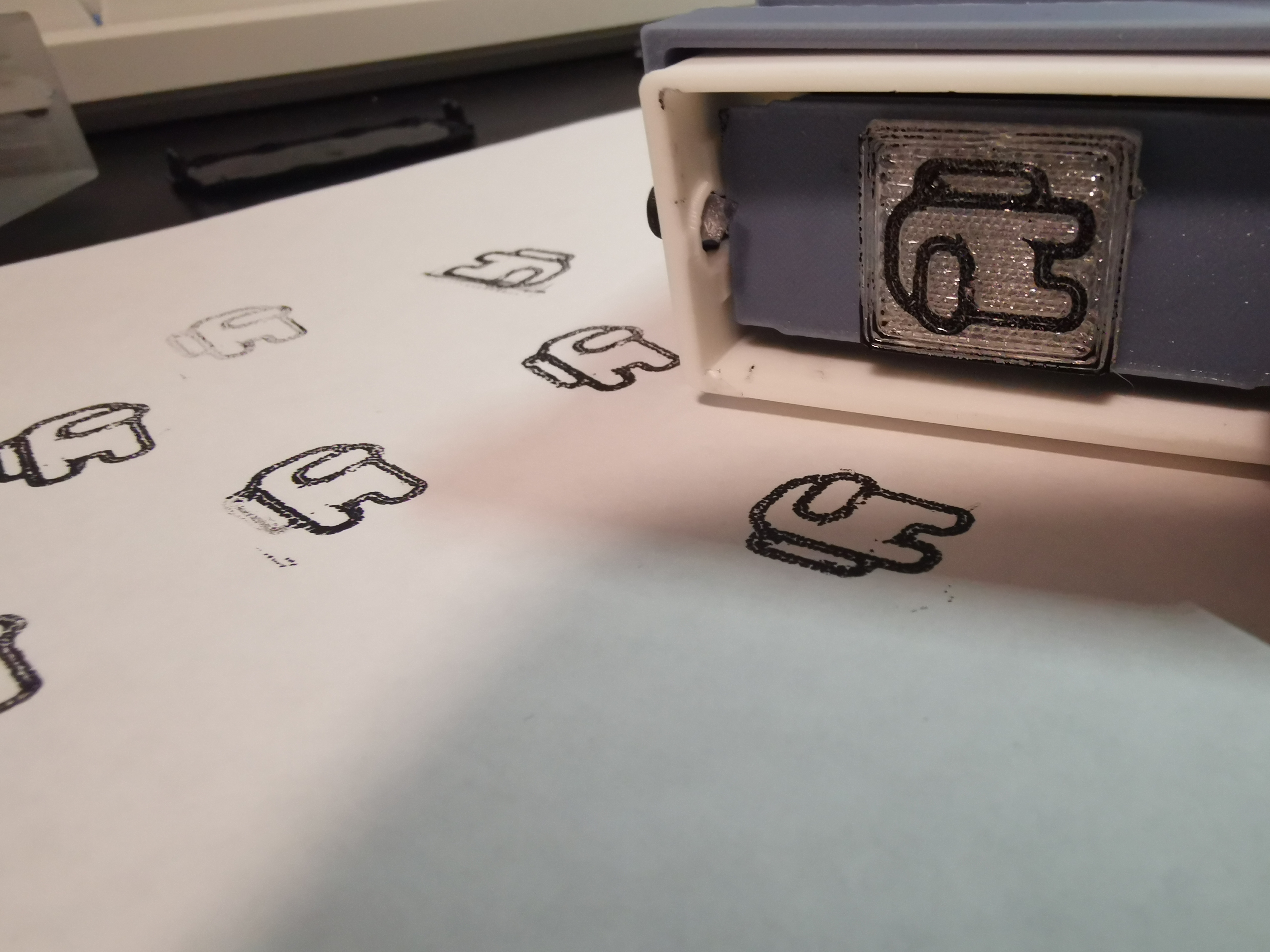 Sau khi khay con dấu được in xong, chỉ cần dùng băng dính hai mặt để cố định nó vào khay giữ.
