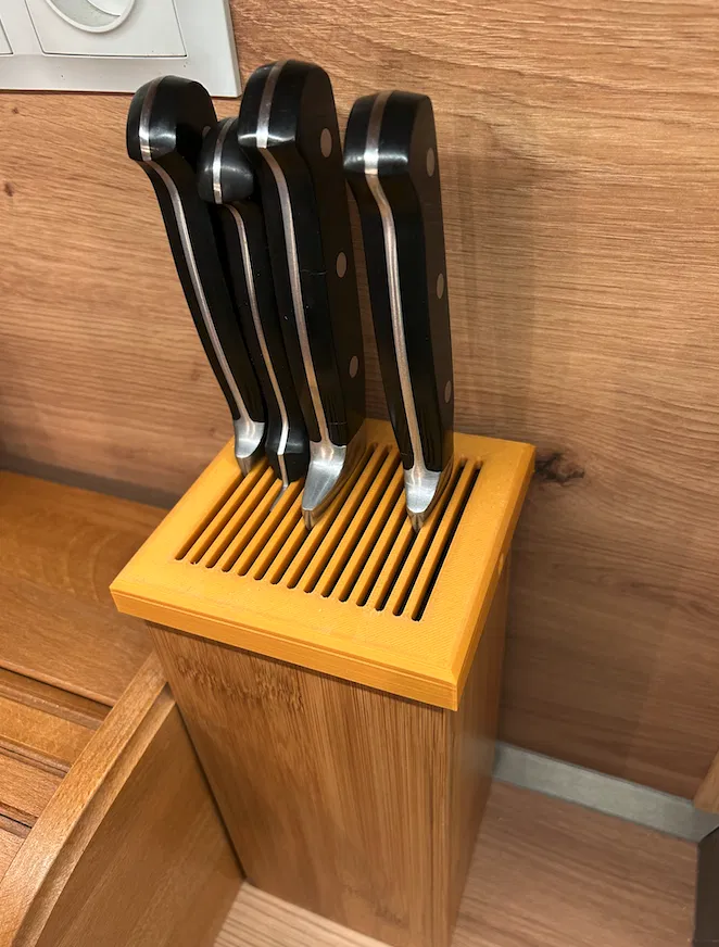 Cái hộp dạng lưới này dùng để đựng dao làm bếp đó bà con ơi! Thiết kế thông minh, gọn gàng, giúp căn bếp của mình lúc nào cũng ngăn nắp. Làm từ nhựa PLA bền bỉ, an toàn cho sức khỏe, tải về file STL là in xài liền.