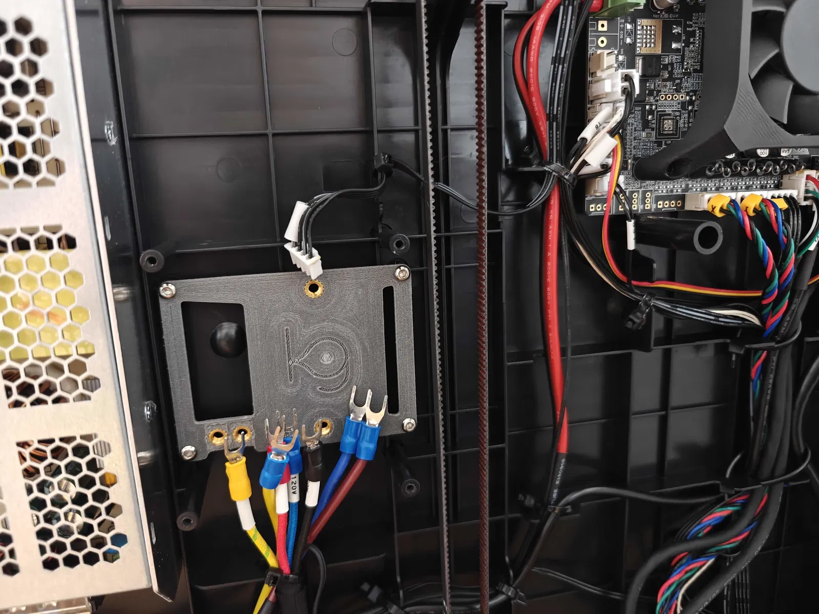 Giá đỡ SSR cho Creality K1 Max V2, hỗ trợ kết nối N và PE tại vị trí cũ. Phiên bản này có các rãnh gắn sâu hơn 1mm mà không làm dày tấm đế. Cần 4 ốc M4S (4mm). Hướng dẫn đấu dây BED chi tiết kèm theo.