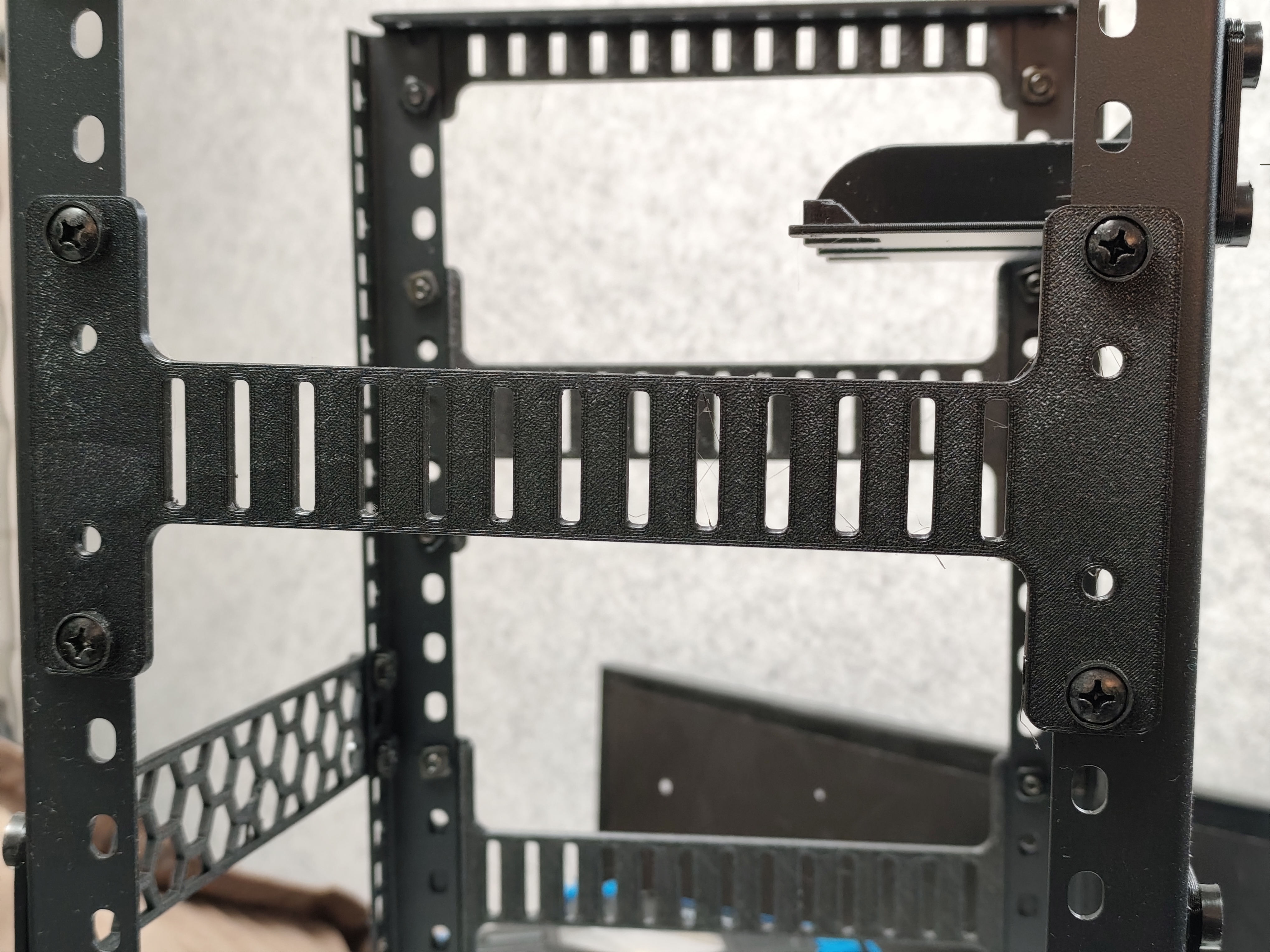 Để dùng mấy cái rack bằng thép tiêu chuẩn thì mấy cái tấm panel hông cần phải chỉnh sửa chút xíu. Tui cũng làm mấy cái chỗ gắn to ra rồi, cho nên cái rack tổng thể nó cứng cáp hơn chút.