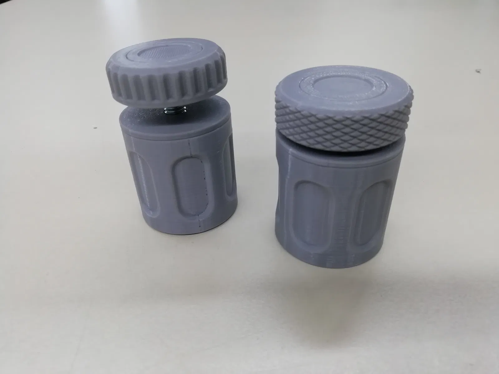 Có hai loại nắp vặn đi kèm, một loại có rãnh và một loại có vân.