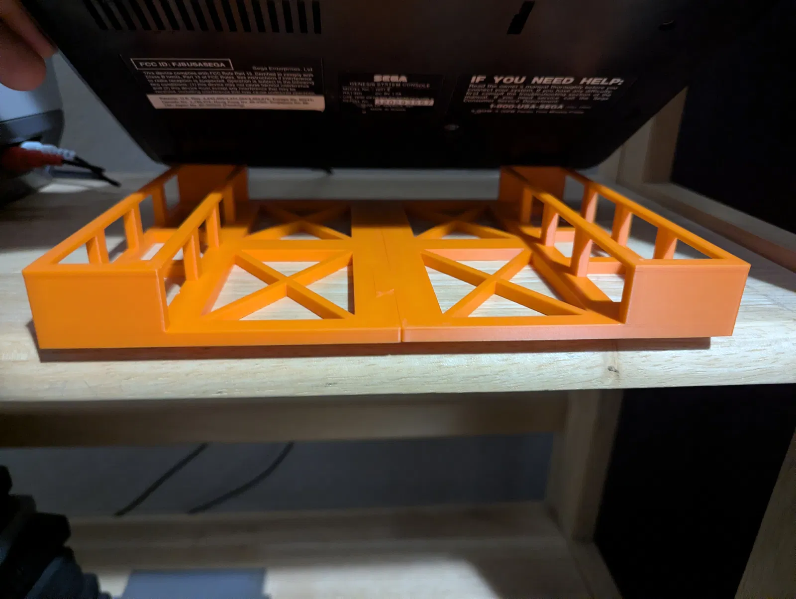 Là một người mê game retro, tui có cả một bộ sưu tập máy chơi game cầm tay với máy console luôn, và một trong những cái máy tui thích gần đây nhất là cái Sega Genesis model 1 của tui. Giờ thì chắc mấy bà cũng biết là cái Genesis đời đầu nó hơi bị nóng nha, cái máy của tui cũng bị y chang vậy đó vì nó là model 1, và tui có đo được nó lên tới khoảng 51 độ C với nhiệt kế đo trán, mà có khi còn cao hơn nữa. Ngoài cái vụ nóng ra thì nó còn ảnh hưởng tới hiệu năng nữa, nên tui muốn làm cái gì đó để cải thiện việc thông gió hoặc gắn thêm linh kiện mới. Đầu tiên thì tui muốn làm một cái đế để nâng cái máy lên, cho mấy cái khe thông gió ở dưới có thêm không khí lưu thông, tui có thử cái mẹo dùng cây bút chì, nó còn tốt hơn là để máy nằm thường trên bàn nhưng cũng không cải thiện được bao nhiêu. Tui nhanh chóng làm một cái đế và in ra dễ dàng, kết quả thì quá là tuyệt vời. Hiệu năng với cái đế mới thì nó tăng lên đáng kể, máy không bao giờ nóng quá 40 độ C nữa và chơi game thì mượt mà hơn hẳn.