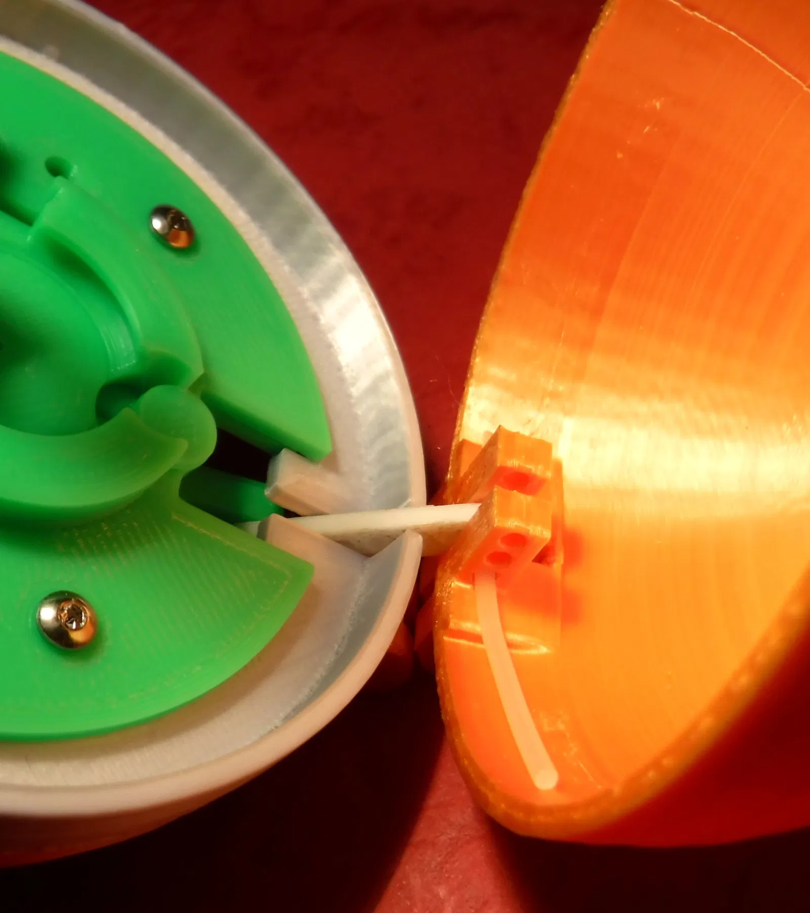Luồn một đoạn filament làm sạch qua lỗ bản lề và cắt bỏ phần thừa.
