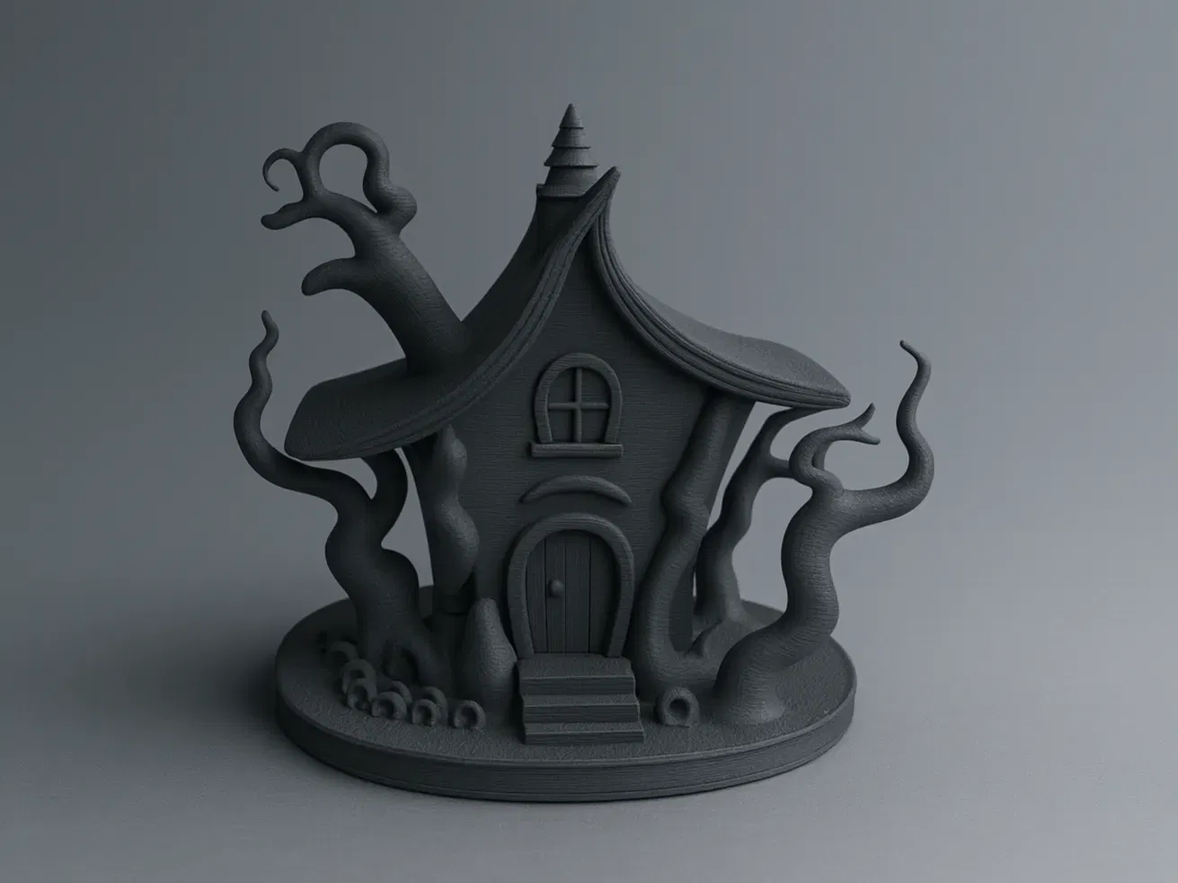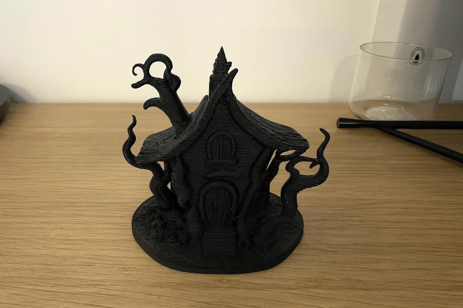 Tôi đã in ngôi nhà ma ám này và thành thật mà nói, nó trông như bước ra từ một câu chuyện cổ tích rùng rợn vậy. Mái nhà xiêu vẹo và mấy cái cây quẹo quọ kia làm nó trông như còn sống, cứ như đang giấu những bí mật nhỏ vậy đó. Đây là một trong những bản in tạo cảm giác liền lập tức – hơi ghê rợn nhưng cũng siêu kỳ ảo. Mẫu này có kích thước 60x52x54mm và tôi đã dùng đầu phun 0.4mm để lấy chi tiết. Chắc chắn là một trong những bản in theo phong cách Halloween mà tôi thích nhất từ trước đến nay.