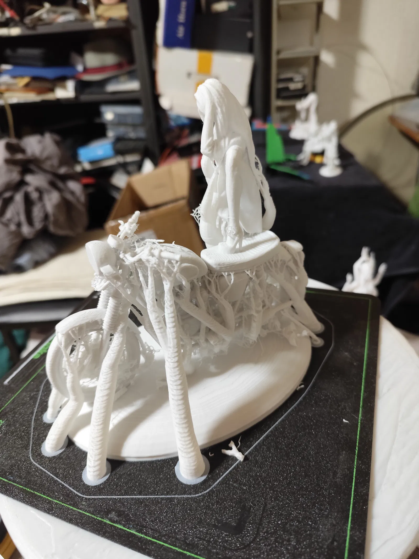 Nên có vẻ như bạn phải dùng mấy cái support hữu cơ (organic supports) thiệt cứng cáp, nhưng phải chừa khoảng cách x/y đủ xa để có thể gỡ ra mà không làm hư nhiều. Tôi in cái này ở chế độ nhanh (fast mode) và nó nhỏ xíu, cao có 70mm thôi. Giờ tôi đang in cái cao 200mm nè...