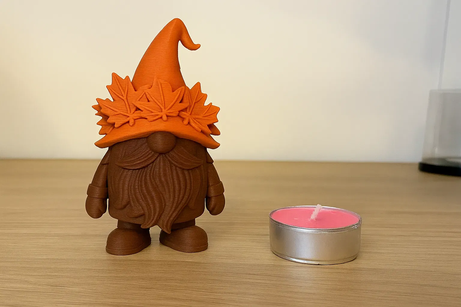 Chú lùn mùa thu nhỏ xinh này được in trên máy Bambu Lab A1 Mini với AMS của tôi. Nó có kích thước 31x26x50mm và có tông màu nâu ấm và cam. Vòng nguyệt quế bằng lá và bộ râu dài mang đến cảm giác mùa thu ấm cúng, hoàn hảo cho mùa này.