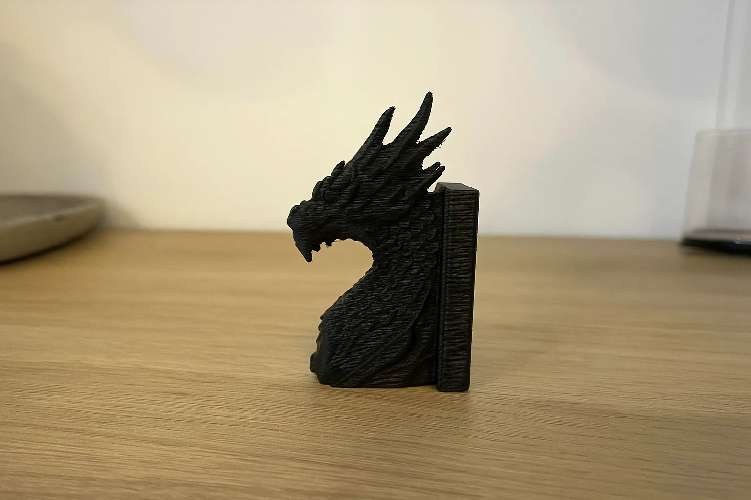 Con rồng chặn sách này trông như bước ra từ truyện huyền ảo, với vảy sắc nhọn và ánh nhìn uy lực. Kích thước 16x45x28mm, in bằng Bambu Lab A1 Mini, nó mang đến sự mạnh mẽ và thanh lịch cho kệ sách của anh em, là điểm nhấn độc đáo cho người mê fantasy.