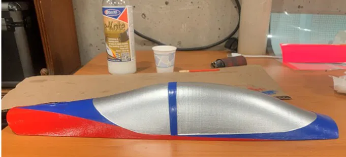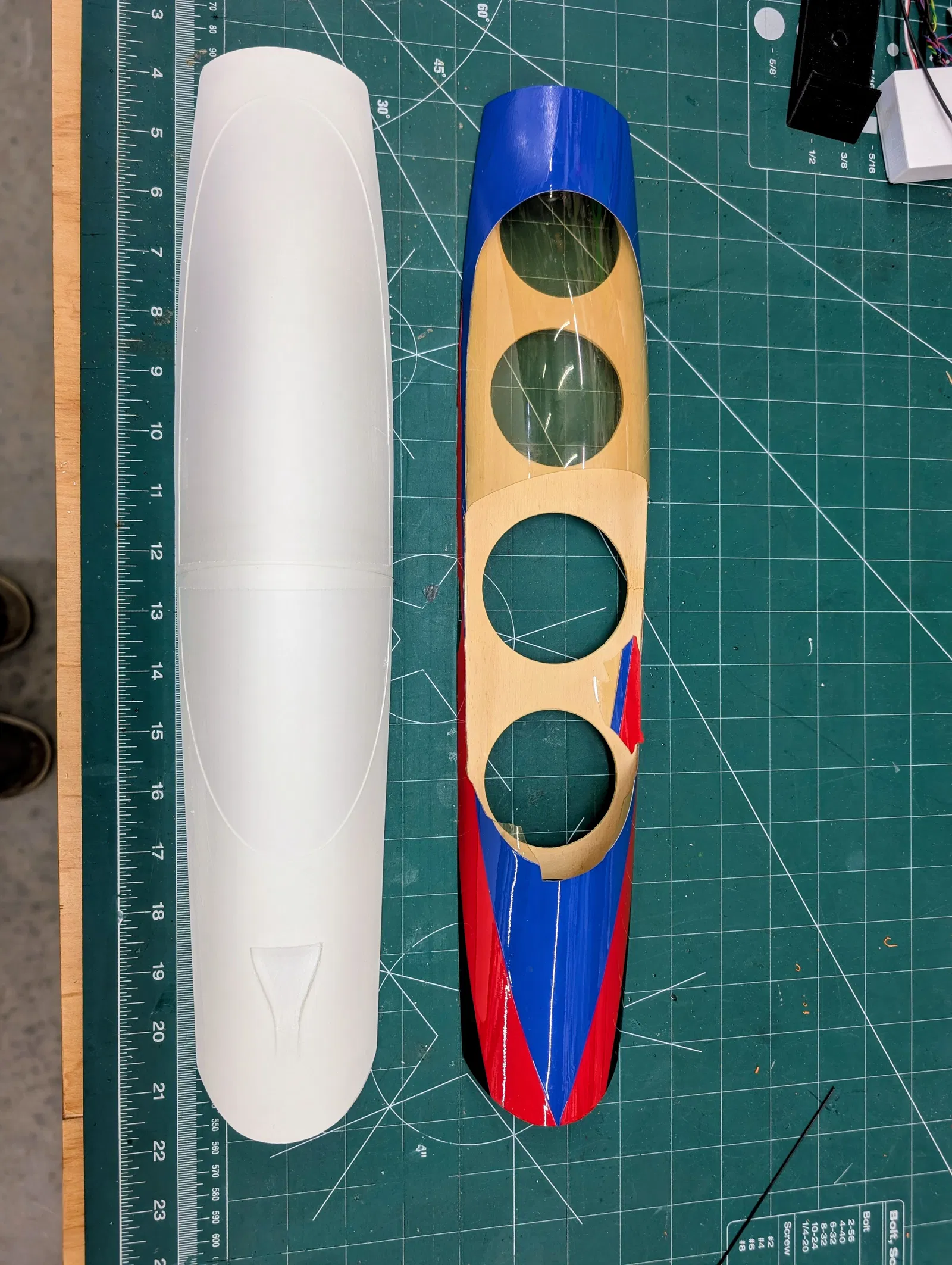 Sau khi các bộ phận được in, có ba lỗ gá giúp căn chỉnh các phần trước và sau của mui máy bay. Tôi đã sử dụng (3) đoạn ngắn thanh carbon fiber 1,5 mm làm chốt và sử dụng DAP Rapid Fuse CA để dán các bộ phận lại với nhau. DAP Rapid Fuse cho bạn khoảng 30 giây để điều chỉnh độ thẳng hàng trước khi keo khô và phản ứng tốt với chất tăng tốc CA, tuy nhiên nếu bạn sử dụng chất tăng tốc thì nó có khả năng làm