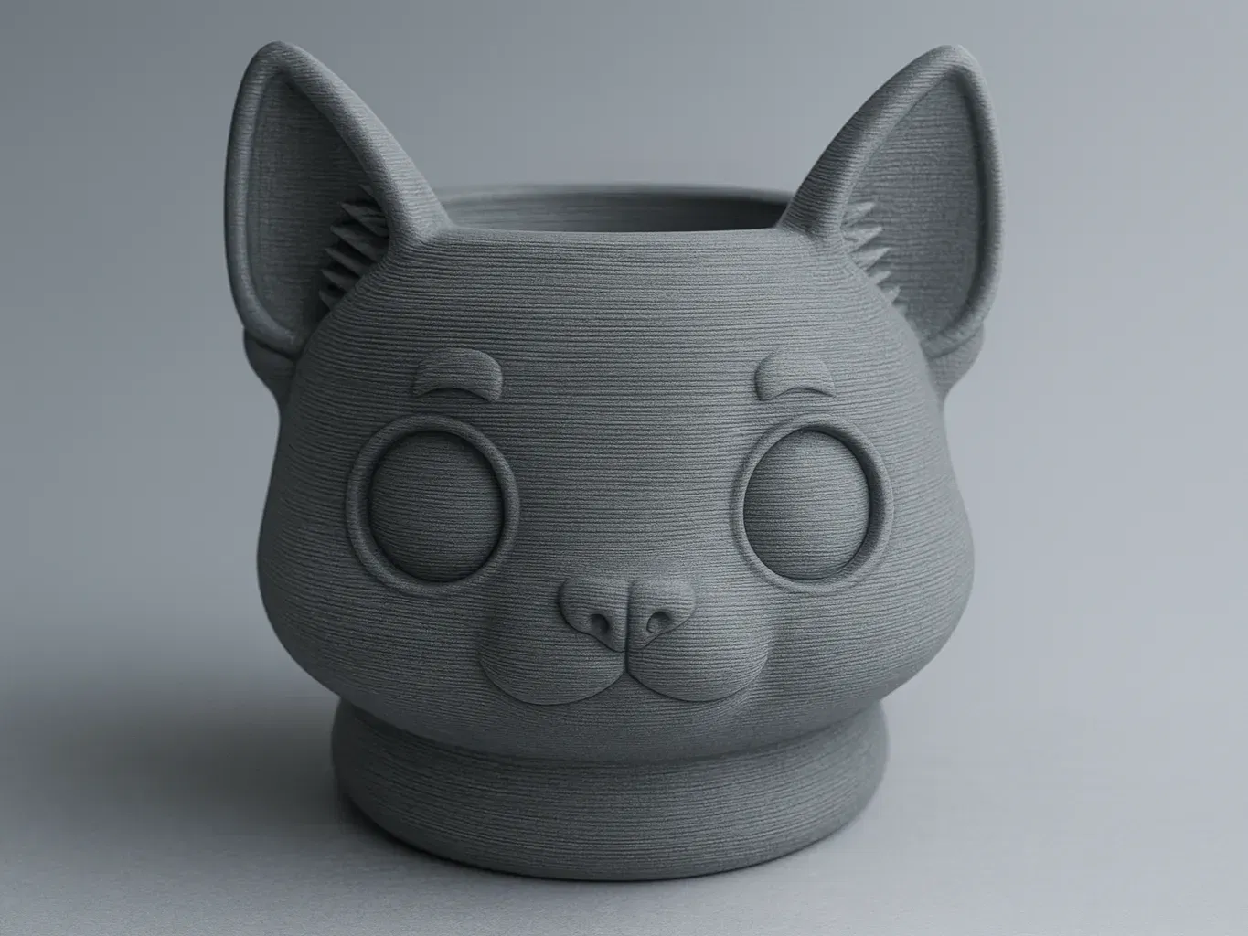 Một chậu cây hình đầu mèo tối giản, hoàn hảo làm chậu cây nhỏ hoặc đồ trang trí bàn làm việc. Thiết kế với đường nét mượt mà, biểu cảm dễ thương, đây là món đồ quyến rũ cho người yêu cây, fan mèo hoặc bất kỳ ai thích thiết kế in 3D độc đáo.
