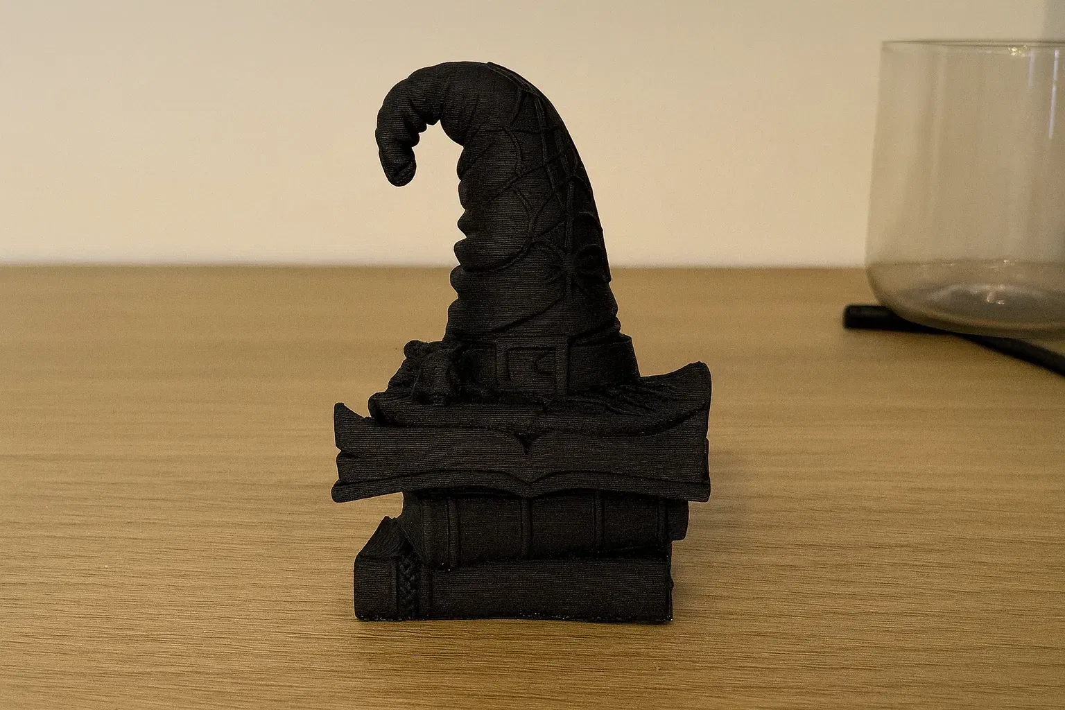 A tiny piece of Halloween magic – a crooked witch’s hat resting on a stack of spell books, complete with spider webs and a little bat. Printed in sleek black on a Bambu Lab A1 Mini. It’s a perfect spooky decoration or a fun gift for any fantasy and magic fan.
