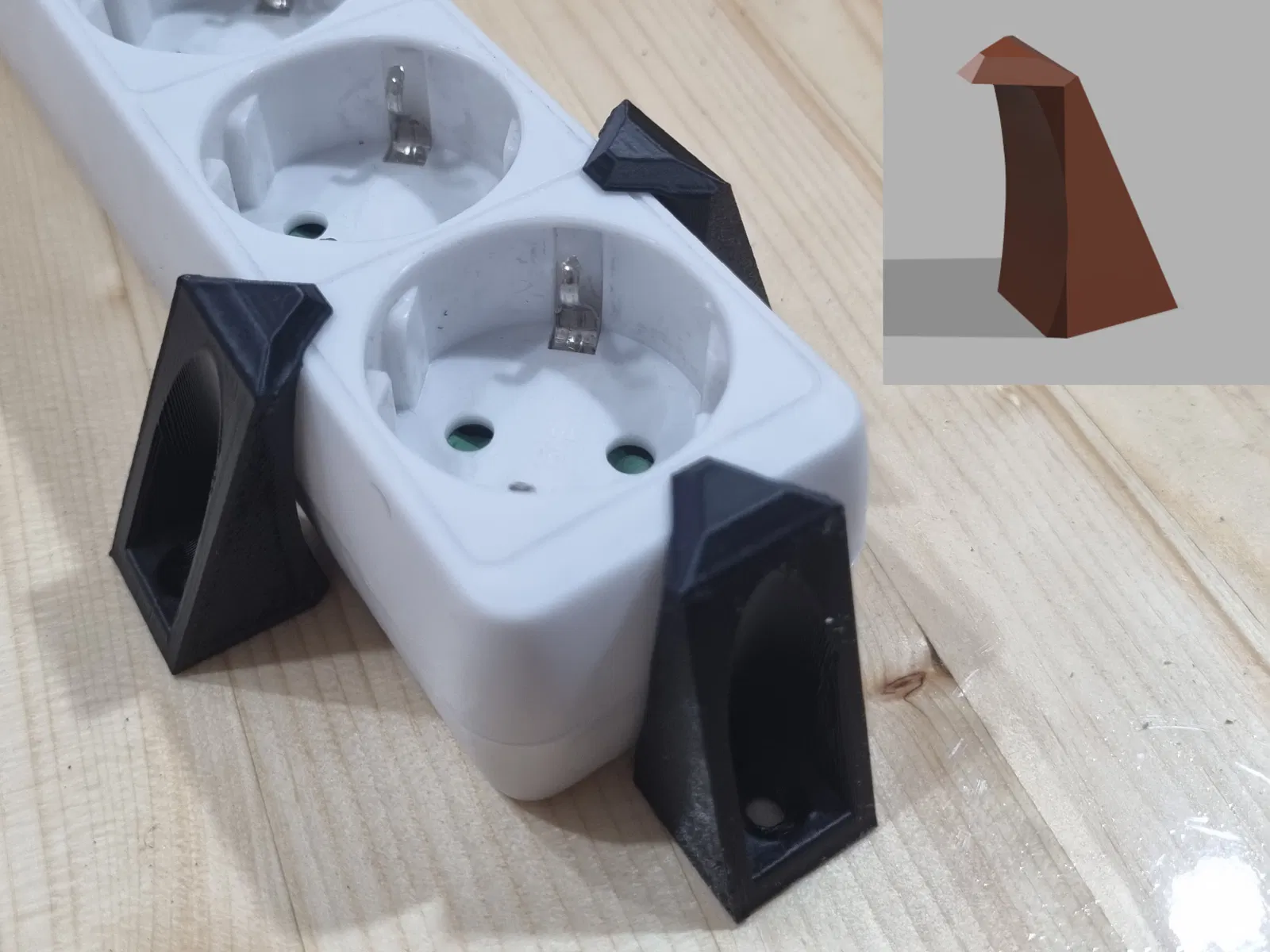 Giá đỡ/kệ ổ cắm điện đa năng, được thiết kế để gắn "phẳng" nhằm giảm thiểu việc tăng chiều cao tổng thể nhất có thể.