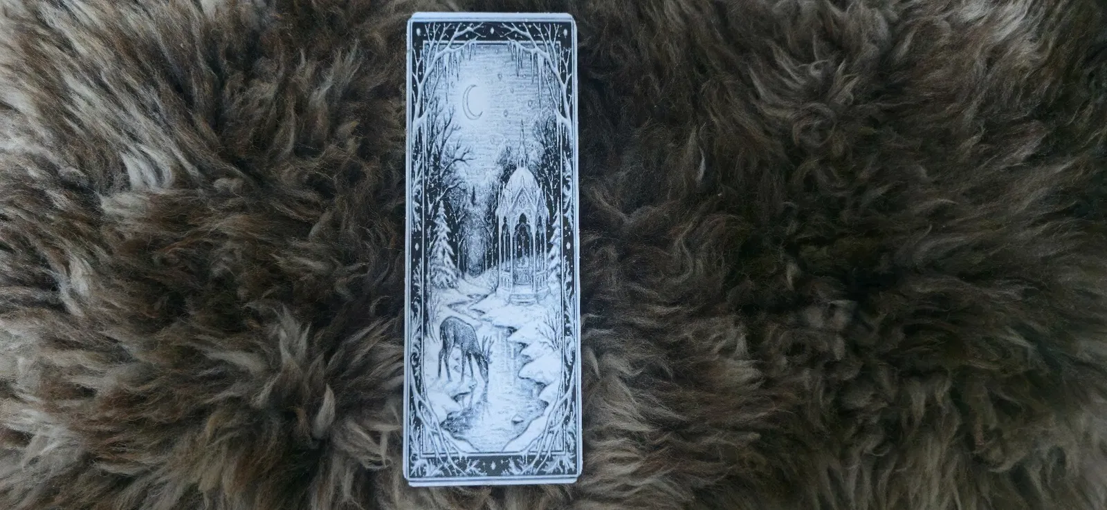 Đây là một chiếc bookmark chủ đề rừng cây mùa đông theo phong cách gothic, độc đáo và đầy bí ẩn.