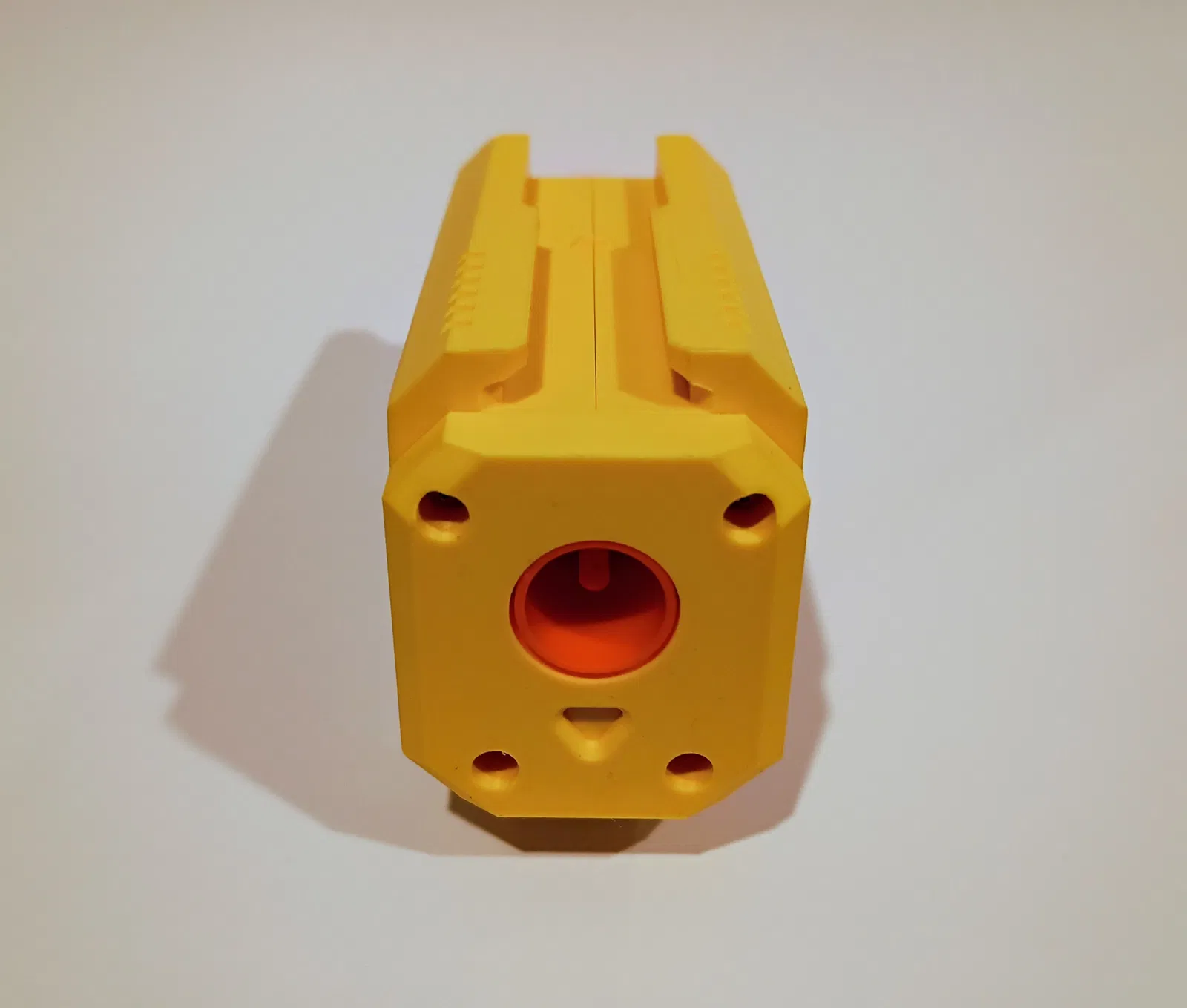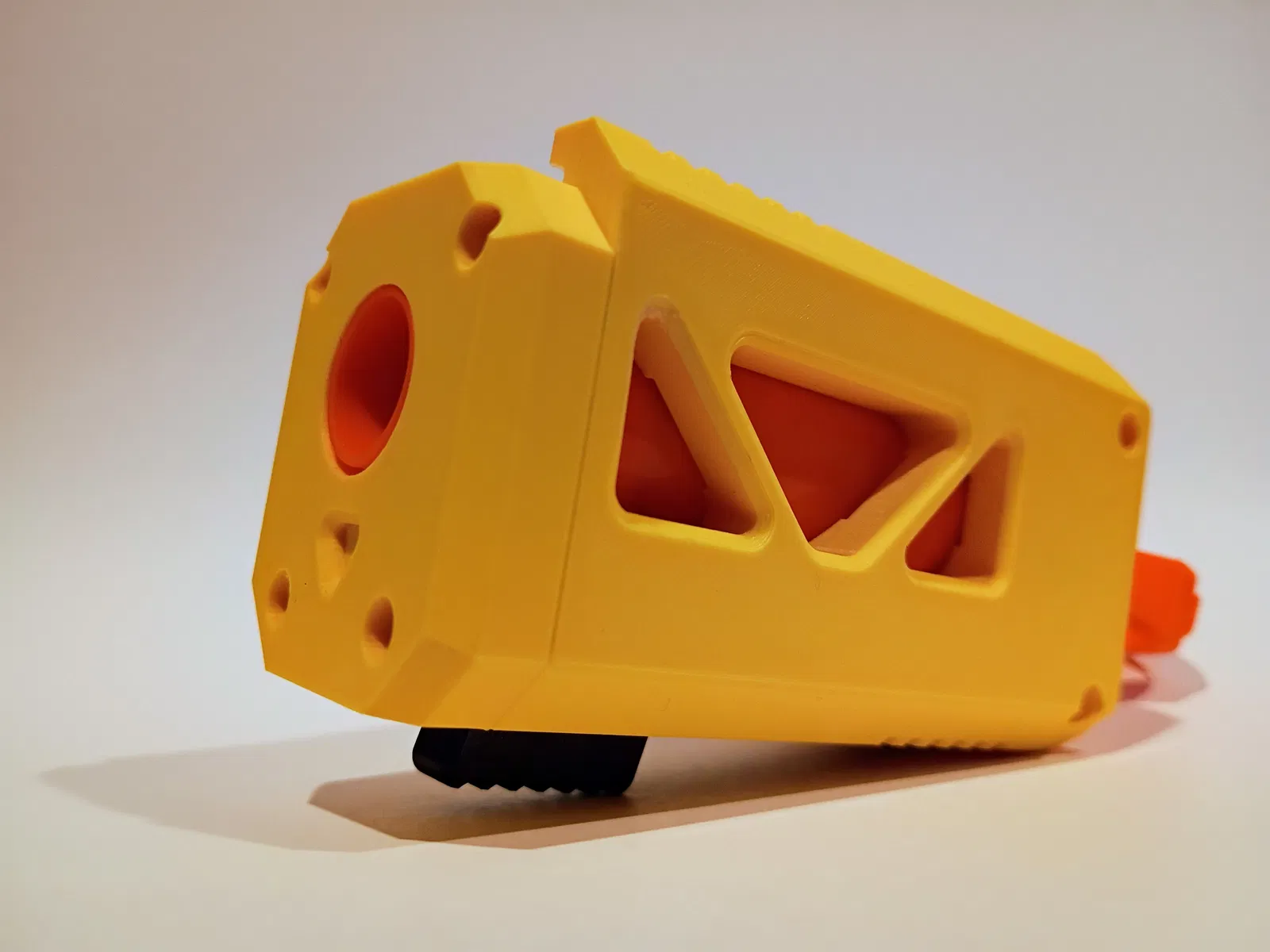 Nhựa: Vỏ ngoài là Yellow PETG-HF. Cò súng là PLA Metal Iron Grey.