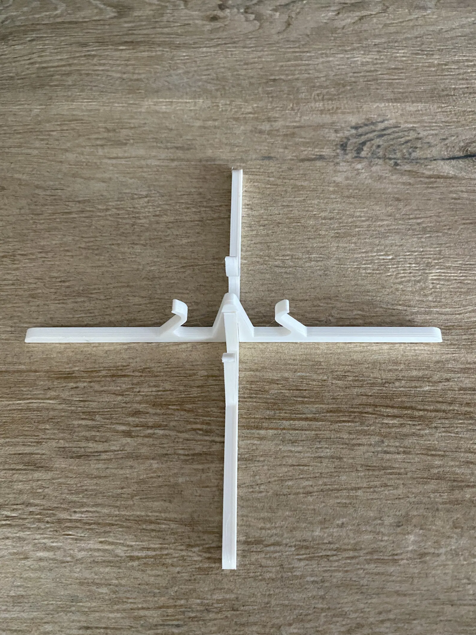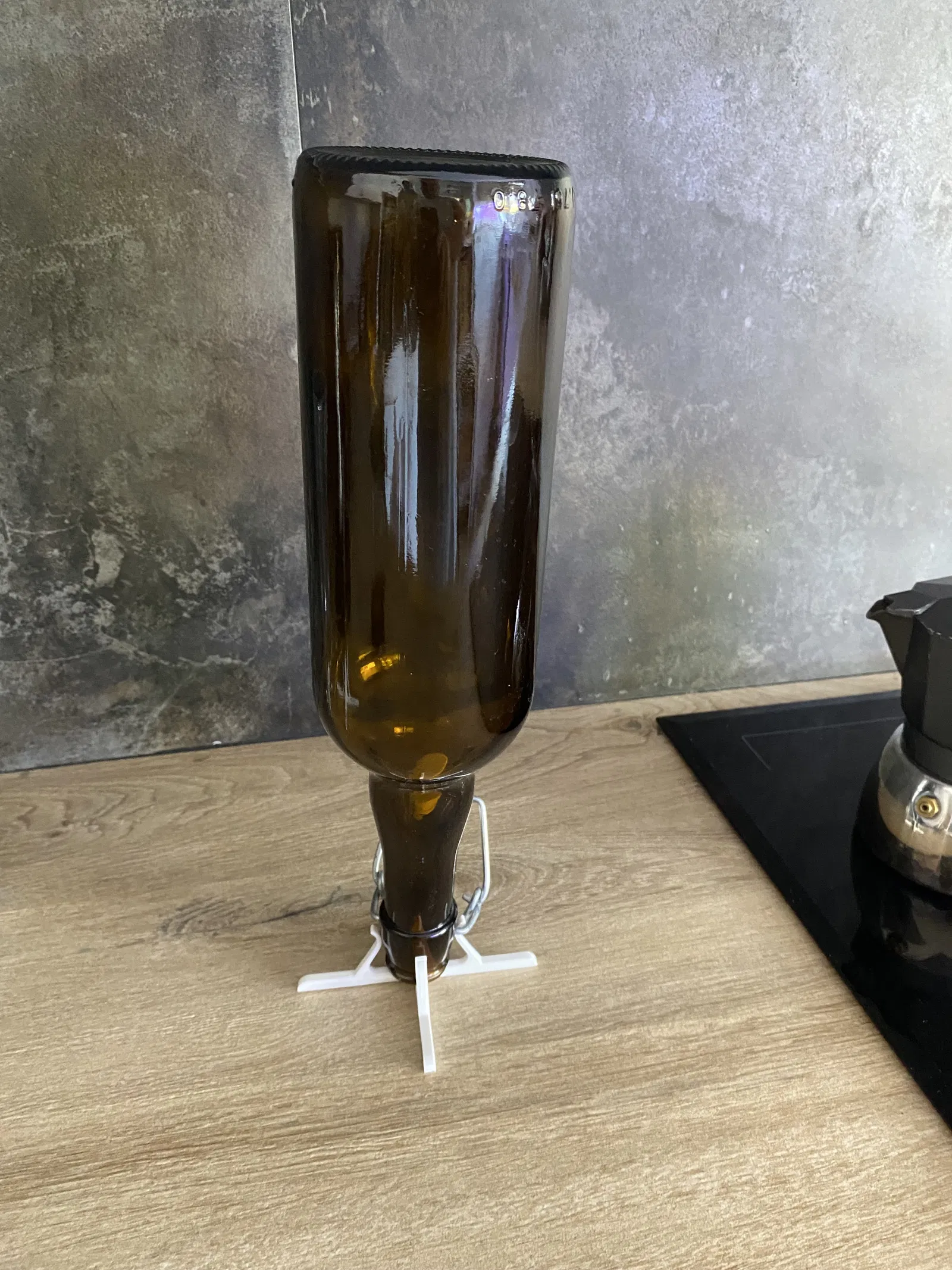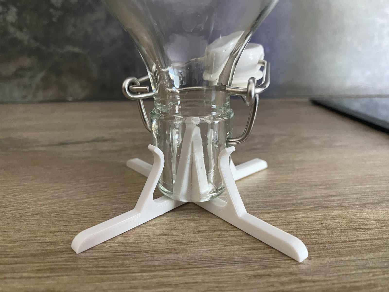 Hệ thống này gồm hai phần, in trong thời gian ngắn. Nên in theo chiều nằm ngang để tránh yếu ở trục Z. Hệ thống được thiết kế cho các chai tiêu chuẩn có đường kính ngoài khoảng 30 mm và lỗ khoan 16 mm. Phần trung tâm của bản in sẽ gắn vào miệng chai, trong khi các bộ phận hỗ trợ hơi linh hoạt ở bên ngoài giúp giữ cho chai đứng vững và thẳng.