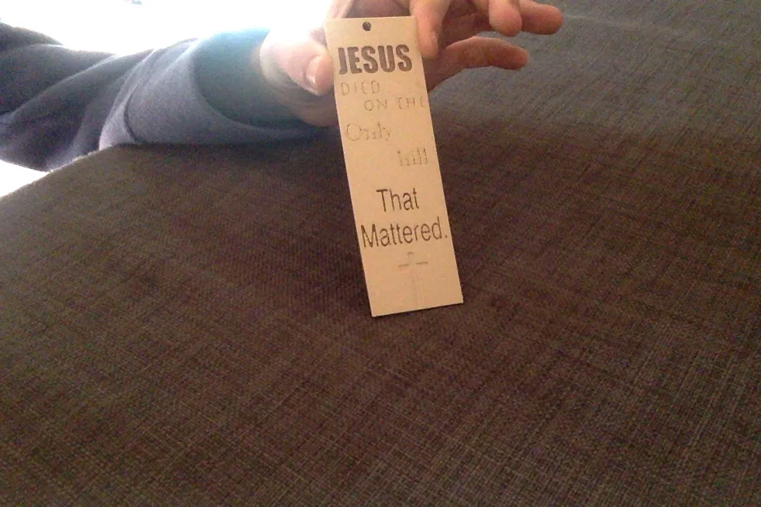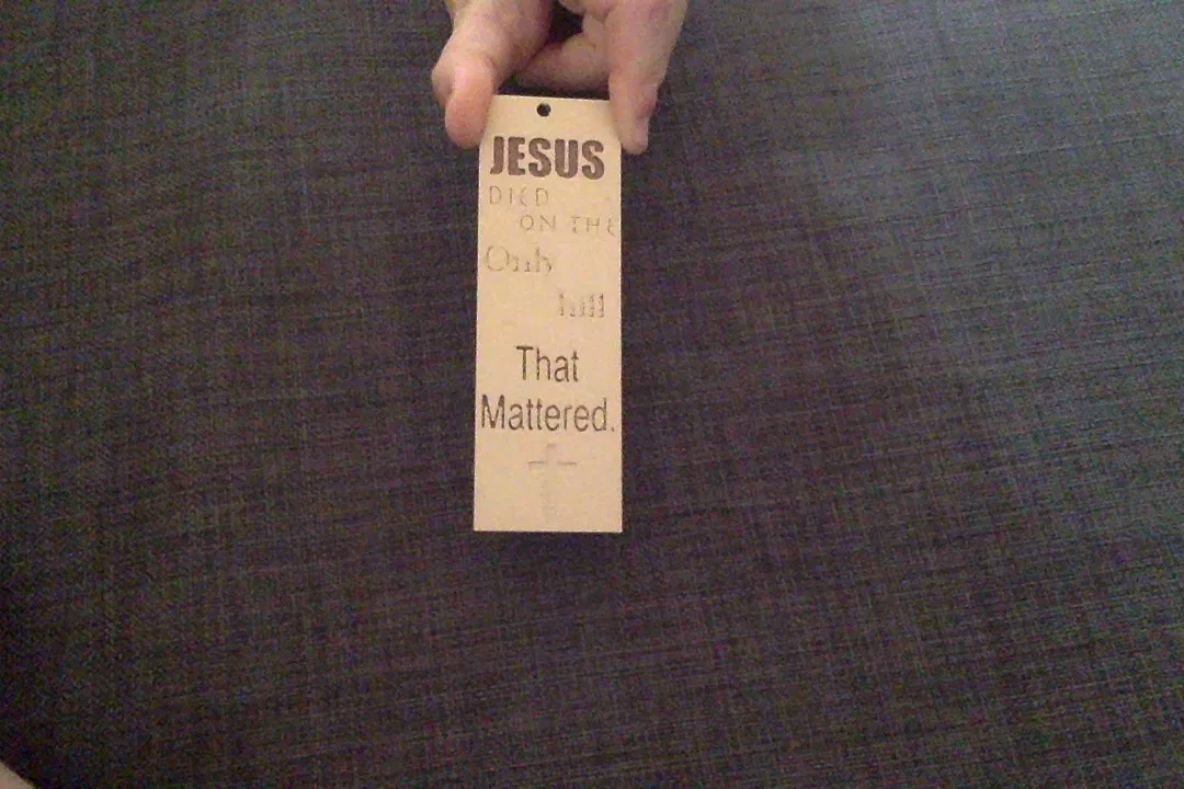 Một chiếc móc khóa hoặc bookmark dễ in, với thông điệp ý nghĩa "Chúa Jesus đã chết trên ngọn đồi duy nhất có ý nghĩa". Hoàn hảo để làm quà tặng hoặc sử dụng cá nhân.