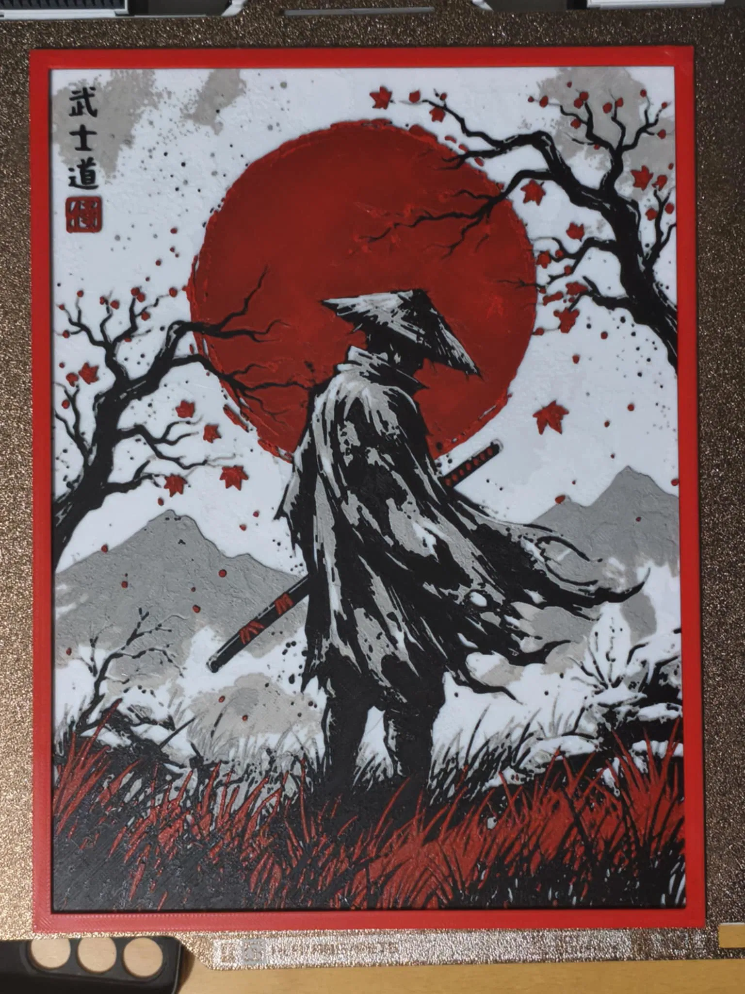 Bắt đầu với Jade White Ở lớp #8 (0.72mm) đổi sang Grey Ở lớp #13 (1.12mm) đổi sang Black Ở lớp #16 (1.36mm) đổi sang Red cho phần còn lại.