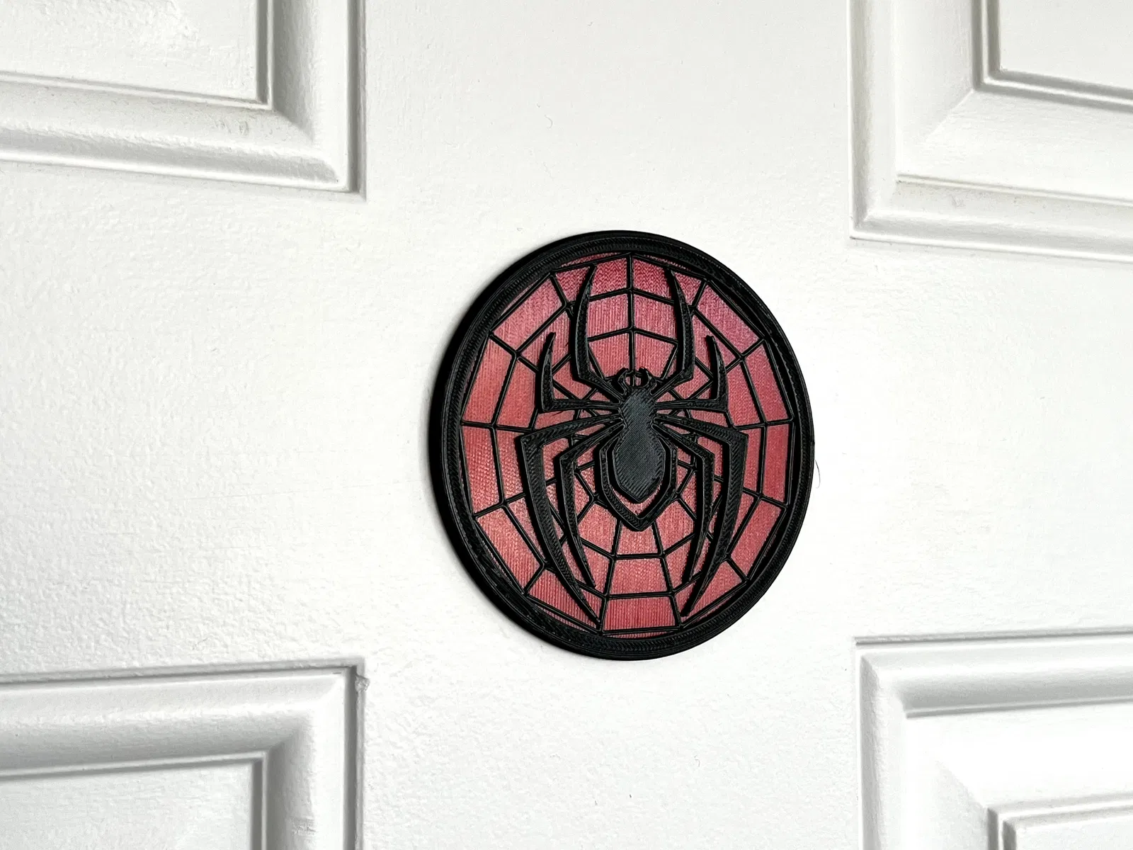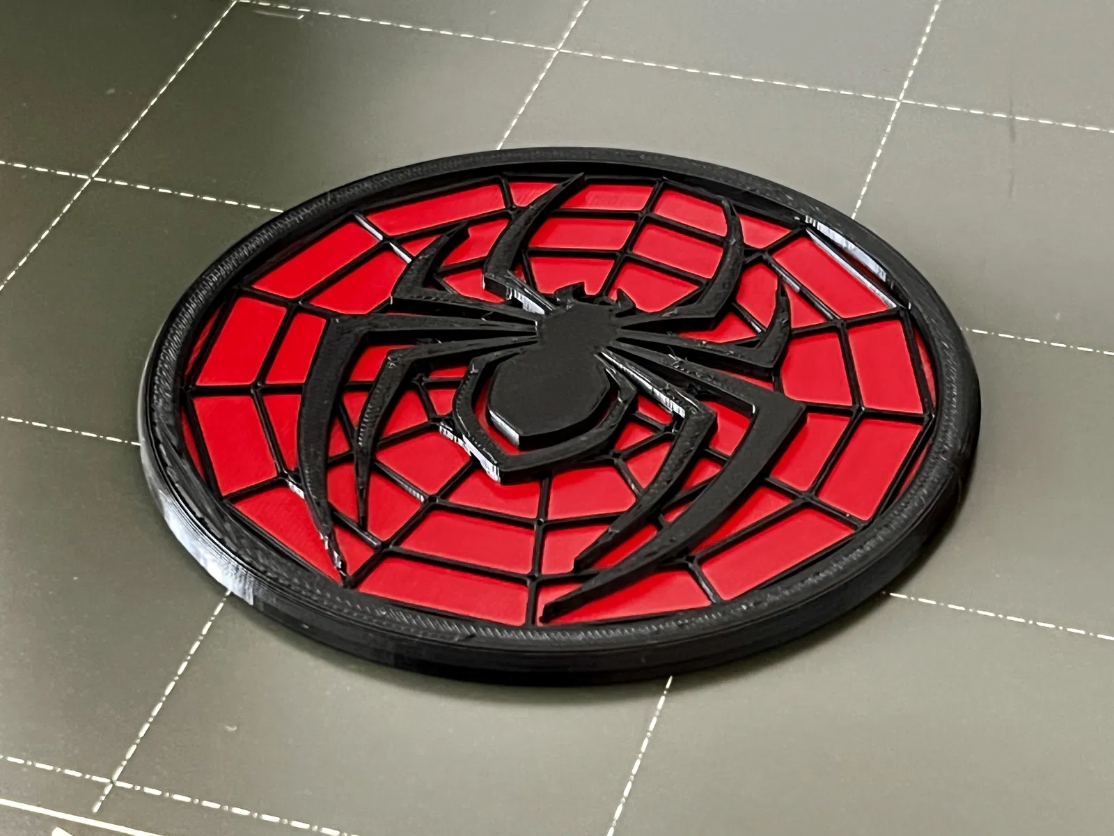 Đế lót ly hình logo Spiderman, có 2 lớp màu. Bạn có thể in 1 hoặc 3 phần, tùy chọn để có viền đen bao quanh. Thích hợp để trang trí phòng ngủ và nhiều nơi khác.