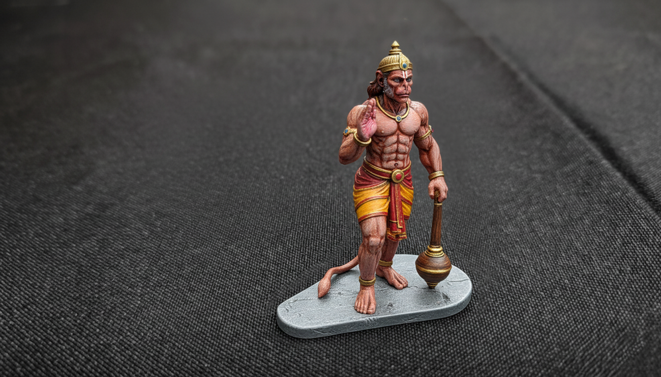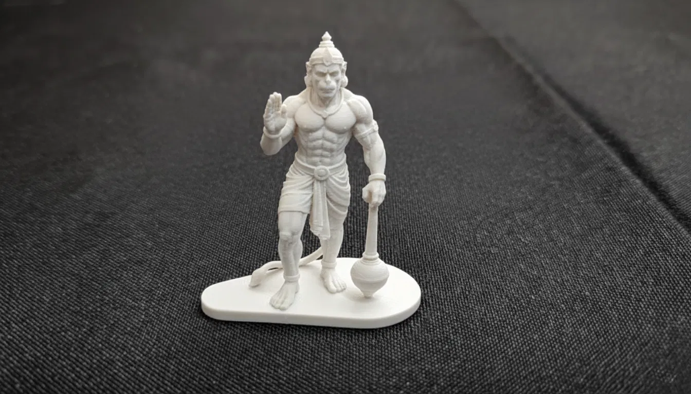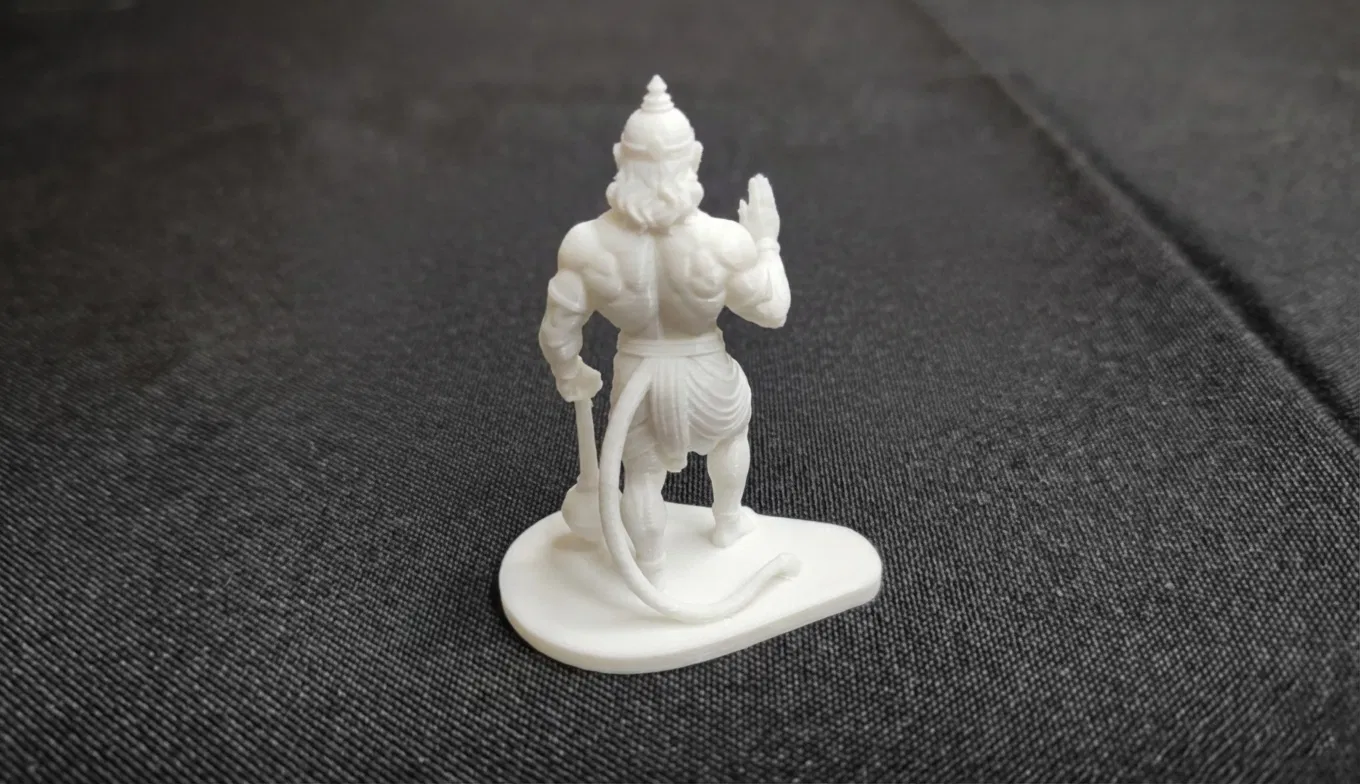 Tượng Lord Hanuman chi tiết, sẵn sàng in 3D, thể hiện tư thế ban phước và che chở đầy uy lực. Mô hình được tối ưu hóa cho in FDM bằng PLA, có thể tùy chỉnh kích thước và chia tách nếu cần.