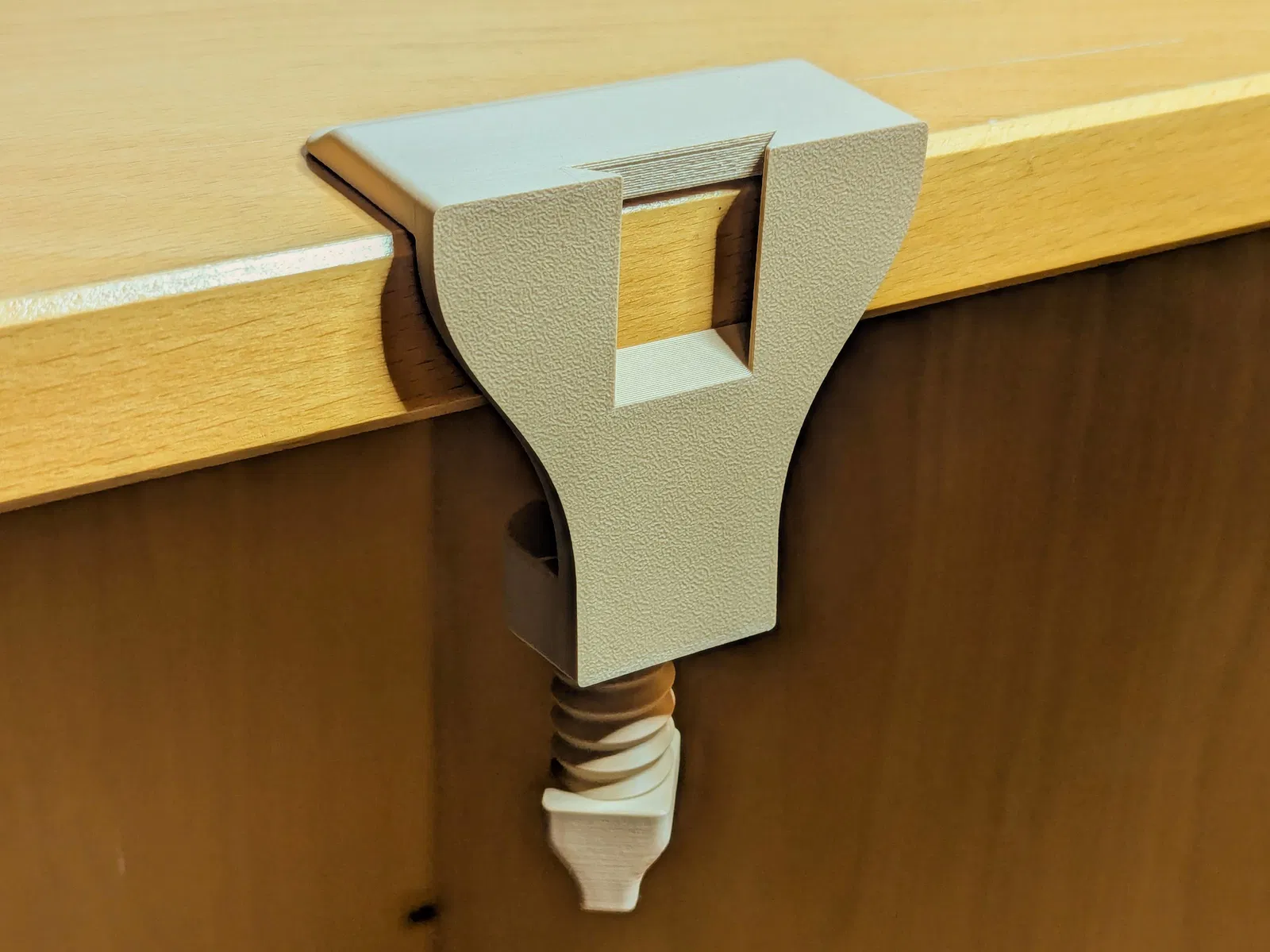 Một cái thùng rác đơn giản để kẹp lên bàn làm việc, tiện lợi cho việc dọn dẹp. Muốn đổ rác, chỉ cần trượt cái thùng ra và để cái kẹp lại trên bàn.