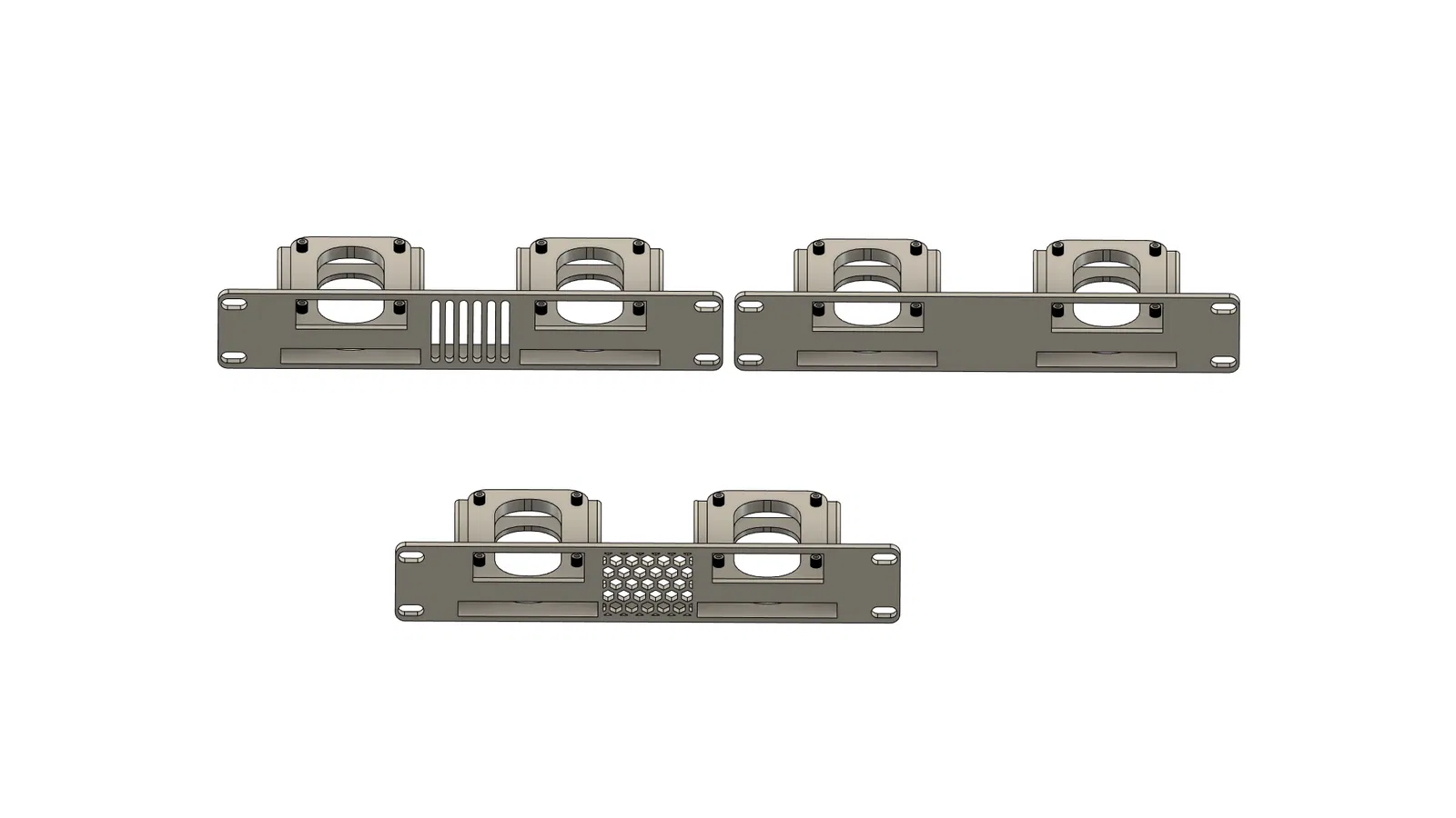 Giá đỡ Rack 10 inch cho 2 Raspberry Pi + 2 SSD 2.5 inch. Có 3 phiên bản để lựa chọn với các tùy chỉnh khác nhau ở giữa. Hỗ trợ Raspberry Pi 4/5 và có thể các loại khác. Gắn bằng vít tự tapping 3 mm. Không hỗ trợ.