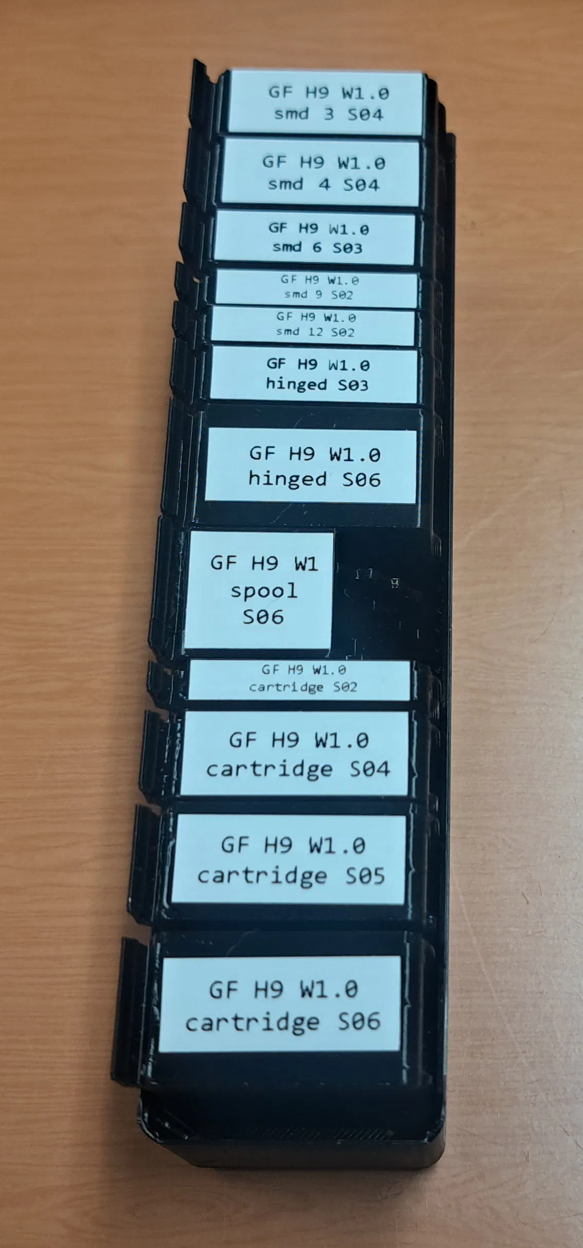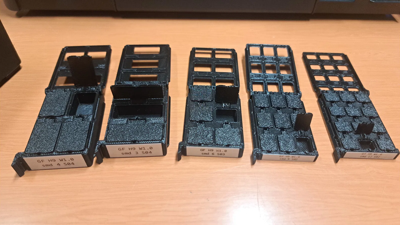 Trộn các hộp đựng được chia ngăn (ví dụ: SMD 12 ngăn) và các hộp lớn hơn cho các bộ phận lớn hơn - tất cả đều vừa với cùng một giá đỡ.