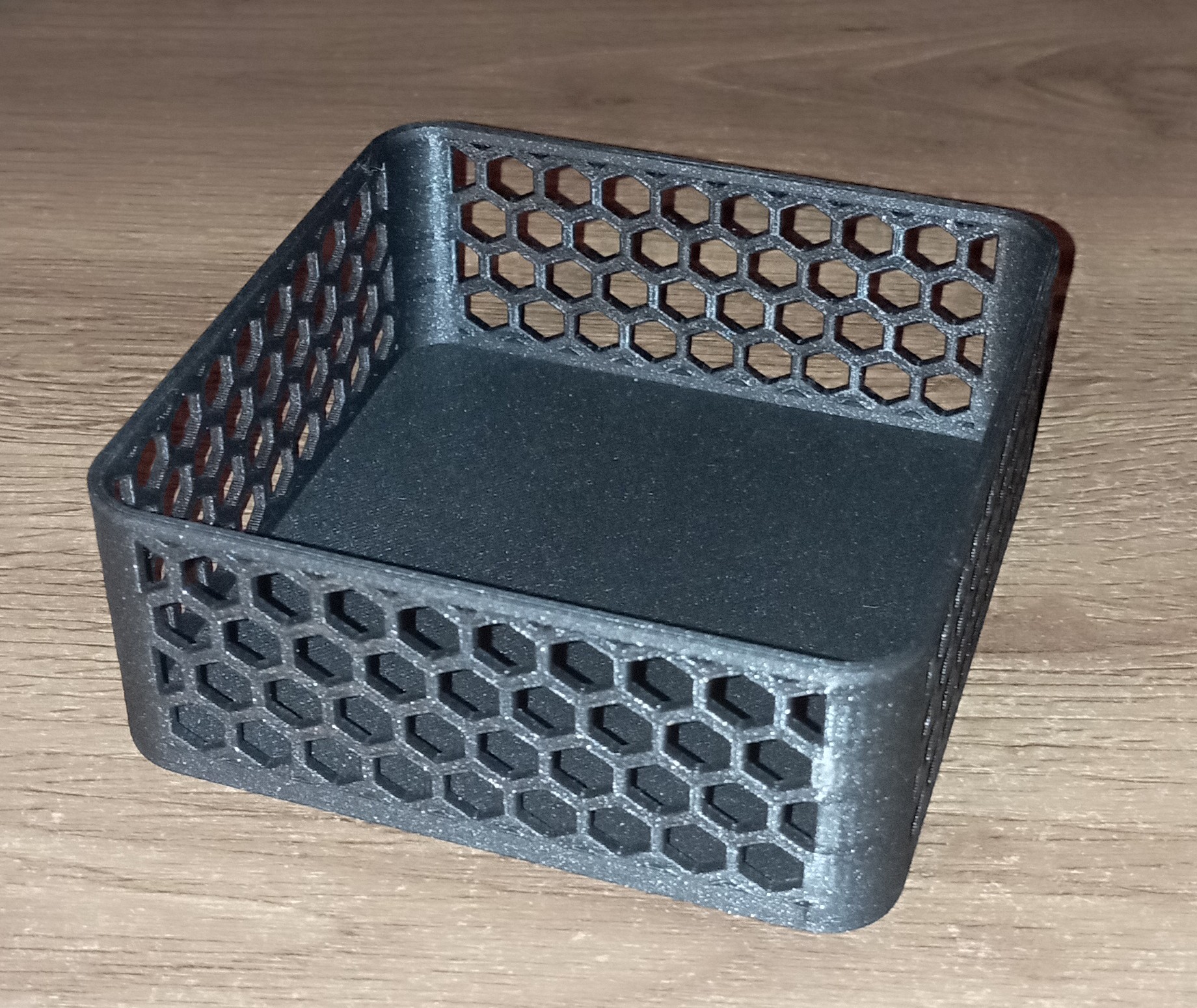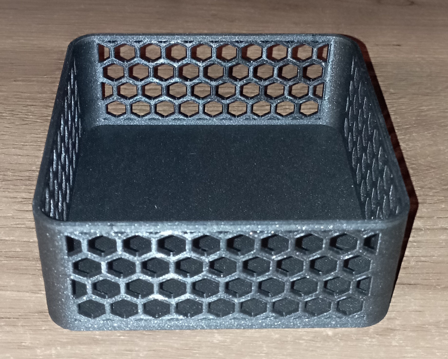 Hộp có họa tiết lục giác với nhiều kích cỡ khác nhau, giữ nguyên tính đối xứng của các hình lục giác dù kích thước thay đổi.