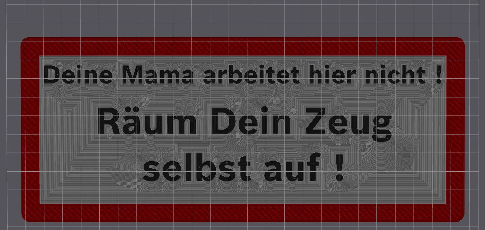Biển báo "Chỗ Này Mẹ Em Không Làm Việc !" này được làm theo phong cách biển báo HỎA MIỄN NHIỄM DIN 4066. In nhanh, gọn lẹ trên Kobra 3 với Geco Cold Plate. Lưu ý: in chữ úp xuống và có thể tùy chỉnh khay in nếu muốn.